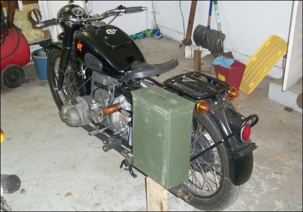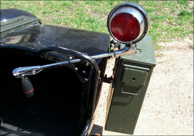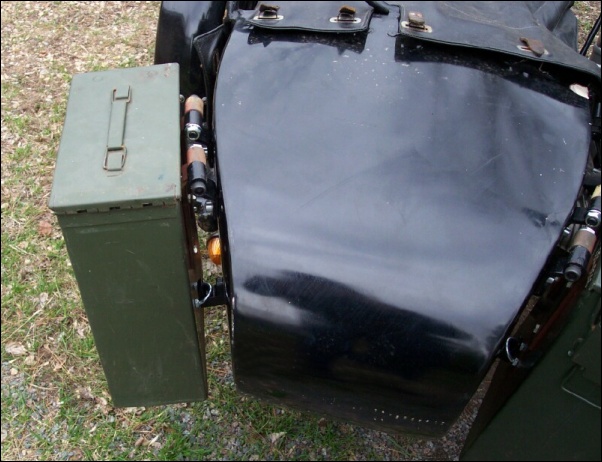 The ammo can is for 60mm shells. Mark will make mounts for the bike and sidecar. It will look pretty good after it's painted black. These cans cost $10 apiece instead of $135! | ||||
