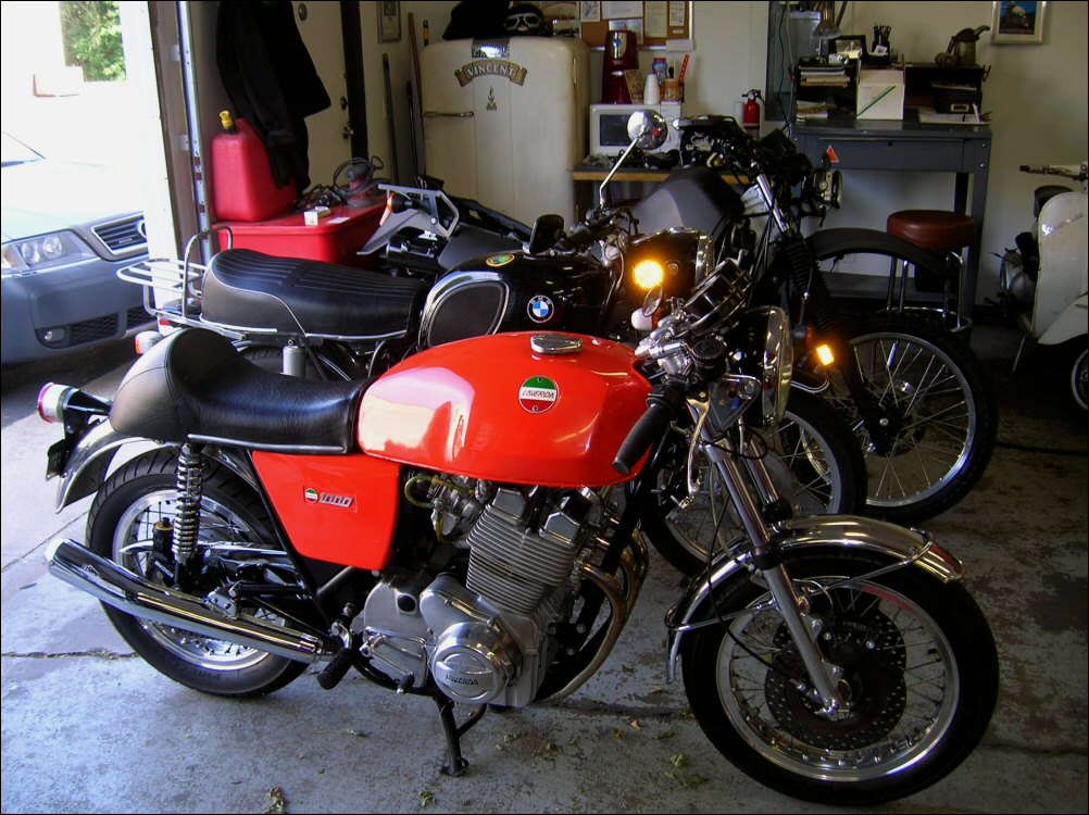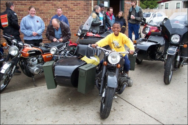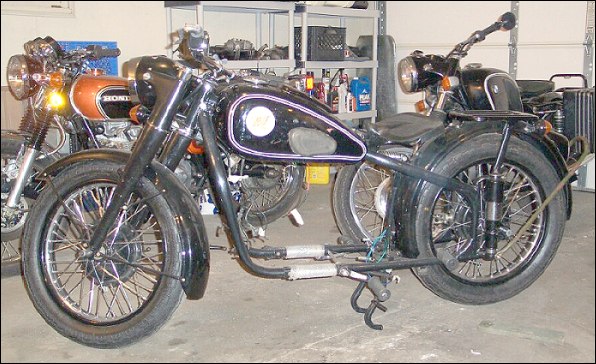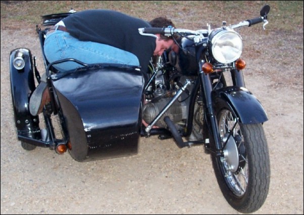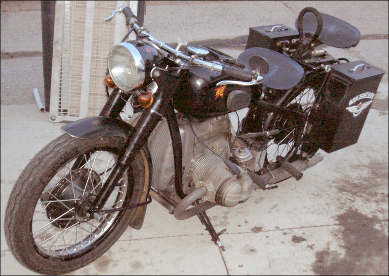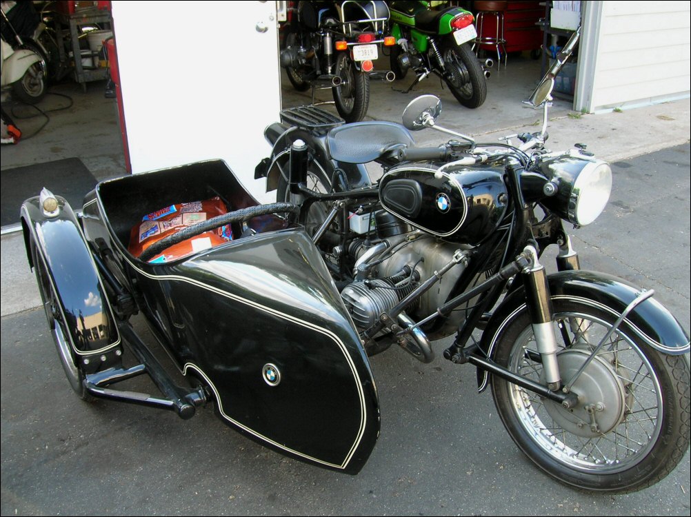"Later in the day we swung by a buddy's house (Stephen Pate, runs a cycle restoration business - www.restorationwerks.com) and tried out a /2 with Stoye sidecar." | ||||