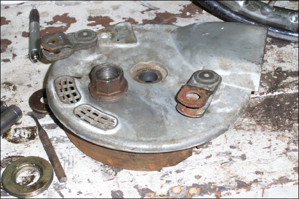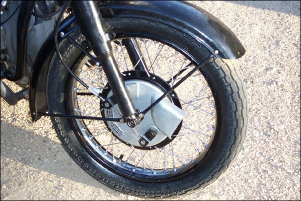 Mark is always making improvements on his bike and one place where the CJ750 could really use some is the front brake! This is the assembly from a Triumph that Mark installed on his bike. | ||||