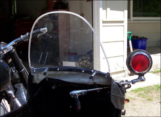 Mark added this sidecar windshield he made from an e-Bay purchase. That's an old sidecar cover which "sure beats paying $160 for a Ural one..." | ||||
