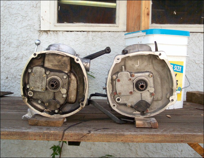 CJ gearboxes need modifying to mate to a BMW engine. In this photo the gearbox on the right has been tweaked. | ||||