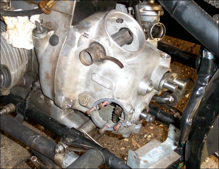 In this photo you can see the adapter ring. The modified gearbox came from Jim. | ||||