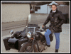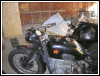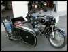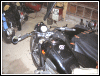 | "Here's some pics of the bike ready for winterwith a windscreen for both bike and sidecar and as much cover as I can get. I prefer riding without a windscreen but at 4:30 in the morning and 30 degrees the protection is appreciated, even if all that drag knocks 10 miles off my top speed. The tires are about to be changed, that's why I have extras strapped to the spare. I've gone through two back tires this summer, mainly because of the high speed commuting I've been doing and also because of a little excessive toe-in that I need to correct. The bike is outside Stephen Pate's restoration building and in the pic of all the boxes is a 1954 Vincent that just arrived for a full restoration. I'm holding a set of vincent "girdrolic" forks in the first picture." | |||||