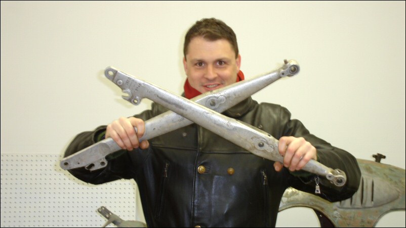 Center stands are easy... until the engine and gearbox are installed. | ||||