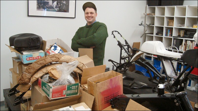 But this is pretty cool. Mark stenciled this most excellent frame tag logo on each one. I'll bet it took hours to make the stencil. And look at the size of that box! This bike can carry more than my wife's car! | ||||