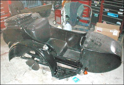 Mark's been busy getting the sidecar attached and lined up properly. Take a look at the lighting, especially by the axle. | ||||