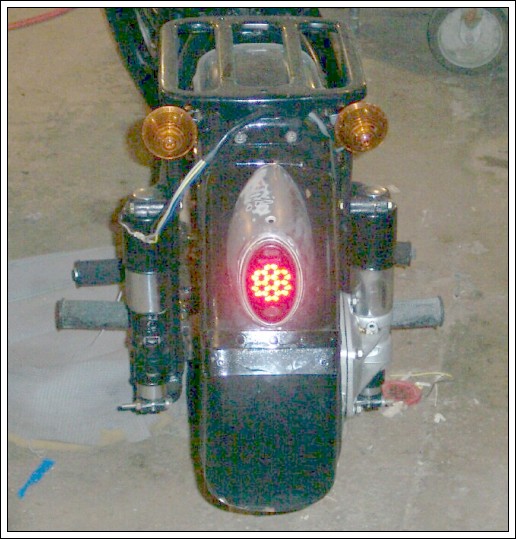Remember, these components will be painted black. The brace is from a Honda and the taillight is from a vintage VW Beetle. | ||||
