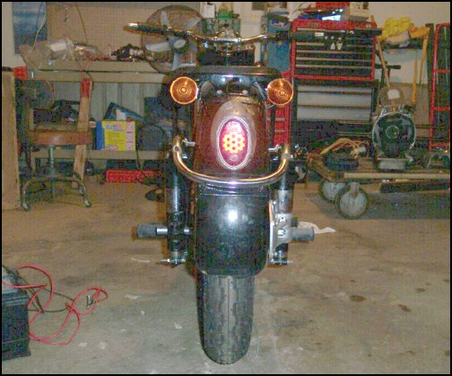 He's experimenting with using a vintage VW taillight. It looks like it was made for a bike. Mark plans to paint the housing black. I think it'll look pretty good. | ||||