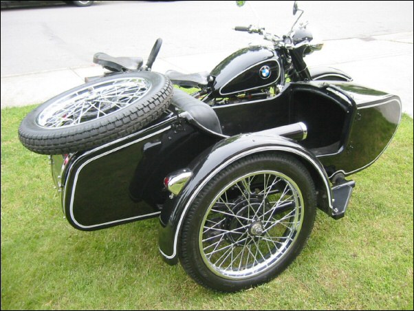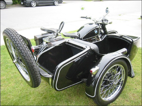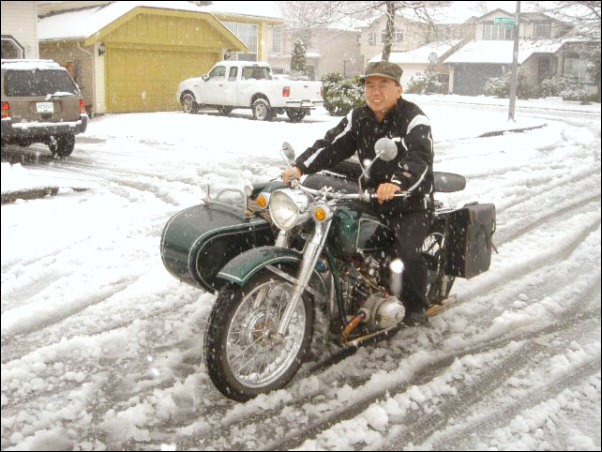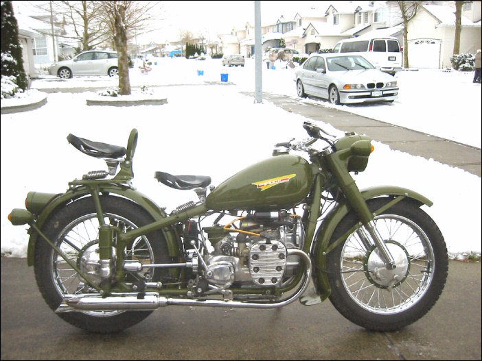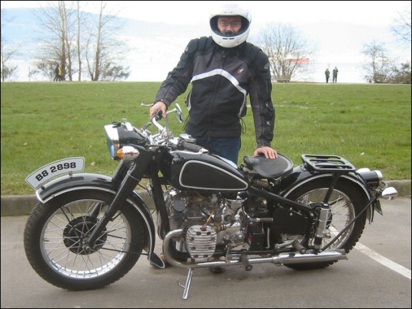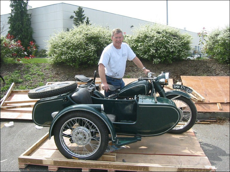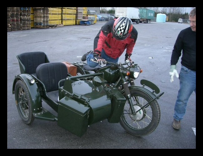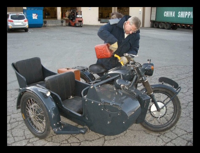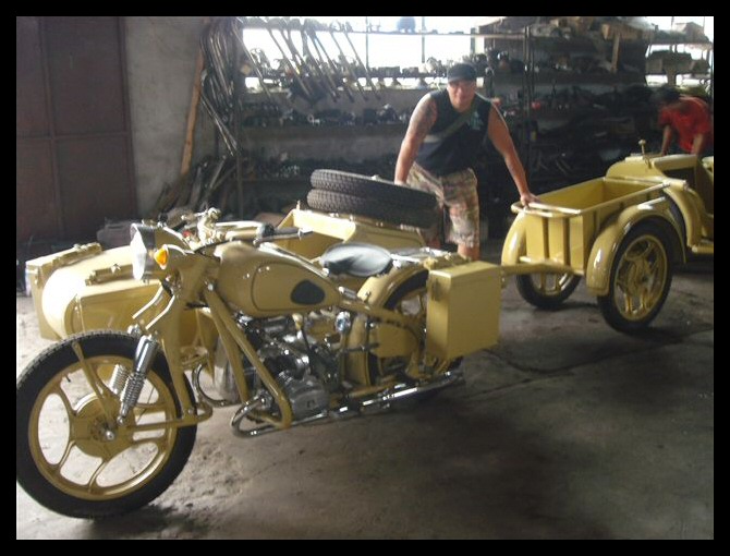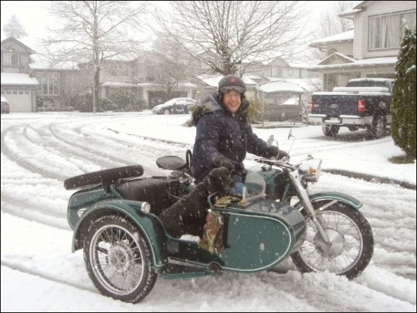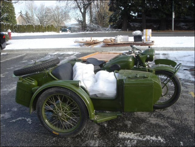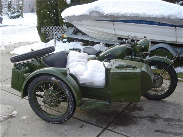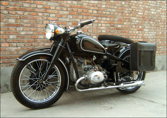 | "My friend Bryan always wanted a BMW R71 but couldn`t seem to find a good one that didn't require a lot of work. He got tired of looking so a few months back he took a week trip to Beijing to visit some of the CJ builders in person. After a few months waiting his CJ is finally here from CJS. The bike first started on the third kick and it rode flawlessly for a few days before going into storage for the winter. Can't wait 'til spring when we get all the local CJ riders together. Enjoy your ride Bryan!" | |||||