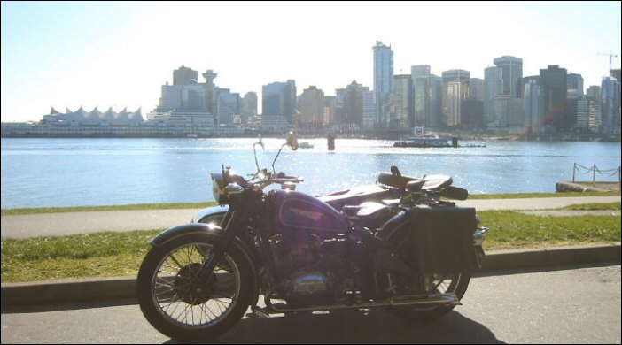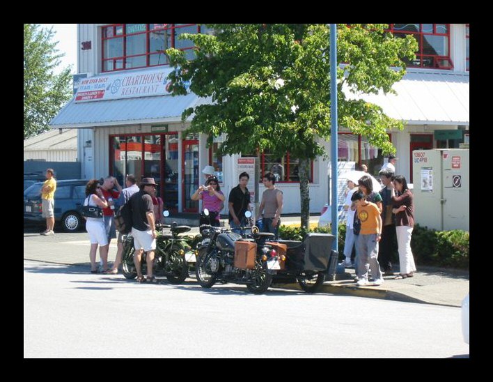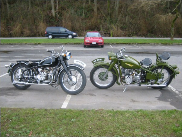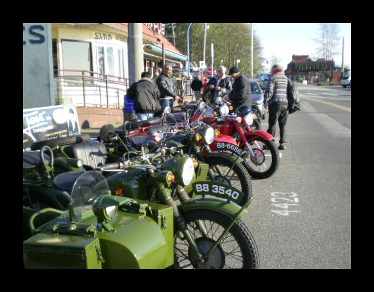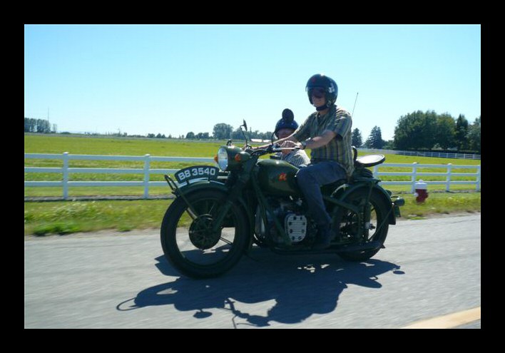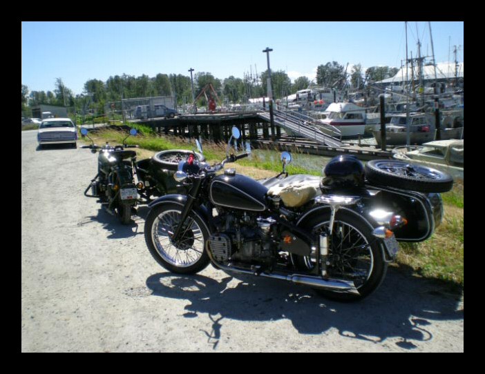 | "Along the way we stopped by to visit some of the CJ owners there. First stop was camping in Peachland. There was a wonderful camp ground beside Okanagan Lake. I want to thank John & Carol for lending me their Panzer Gray CJ for two days. The wife and kids had a blast while I rode them around town and the lake. We then drove down to Summerland to visit Derek and his wife Candy and stayed a night there overlooking the lake. Derek rolled out his CJ and showed me that he won 1st place at a Show and Shine. After a week of camping a few days later I went to Seattle to look at boats. Along the way I stopped by to visit Alex Sargent from CJE. Alex has a police CJ painted red. He has a lot of mods on his bike like Mikuni carbs, tow hitch, lots of metal storage etc. It's always nice to visit someone from the board. Last week I got an e-mail from Bill T., a CJ owner from Quebec who just arrived in Vancouver with his friends. I invited them to ride my two CJs to the back roads of Richmond." | |||||