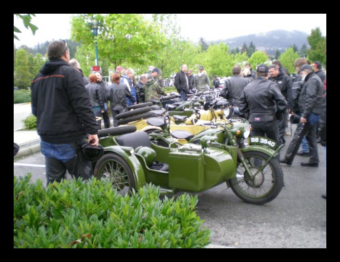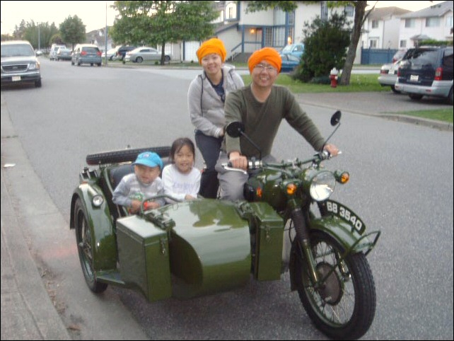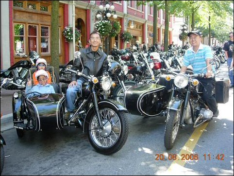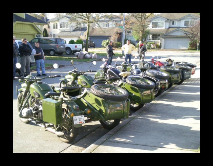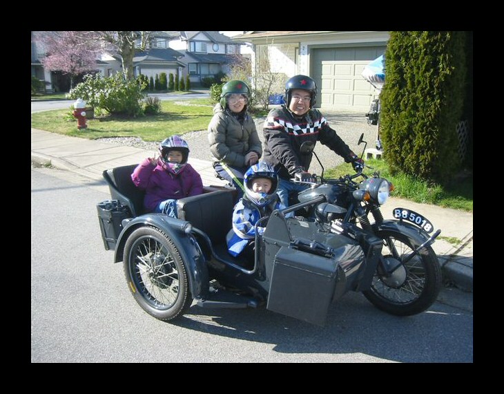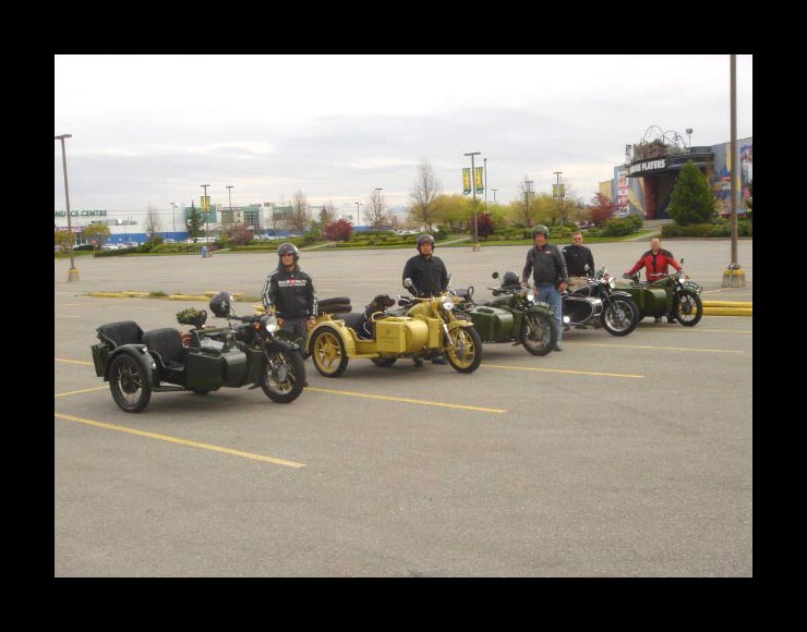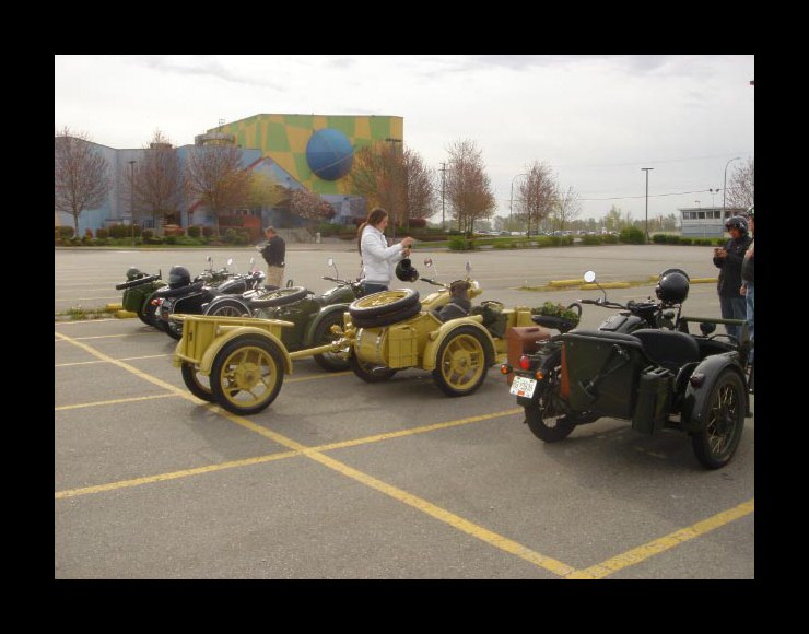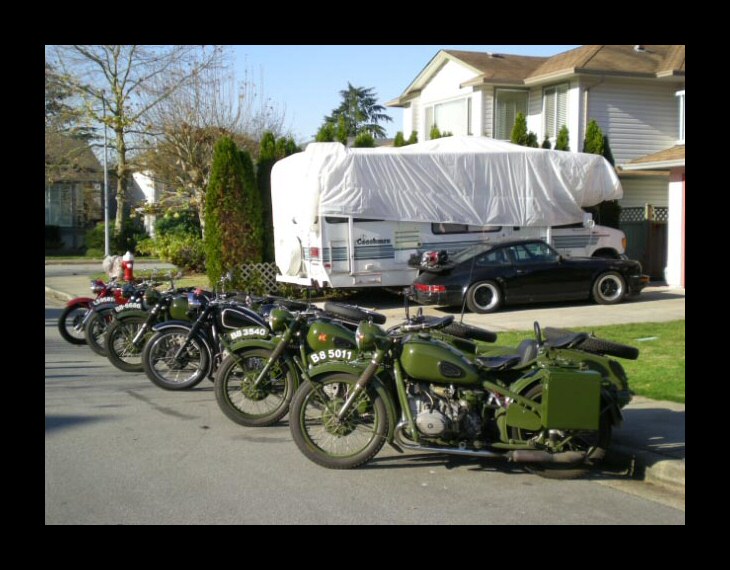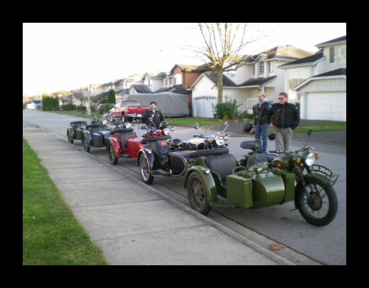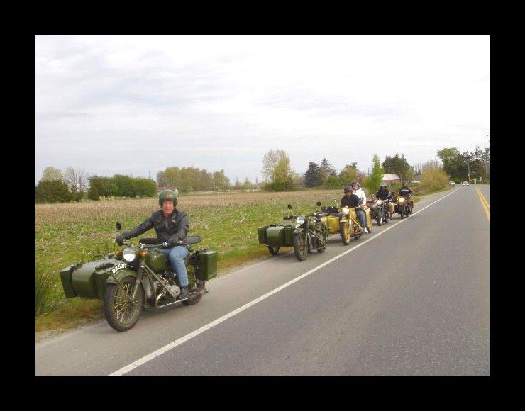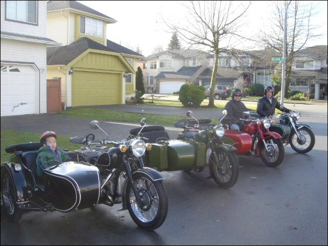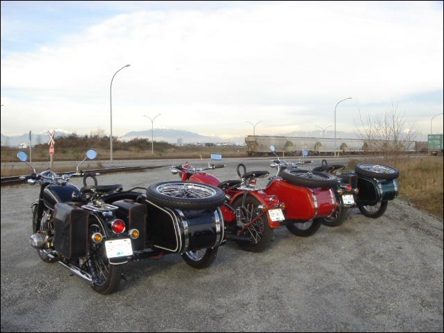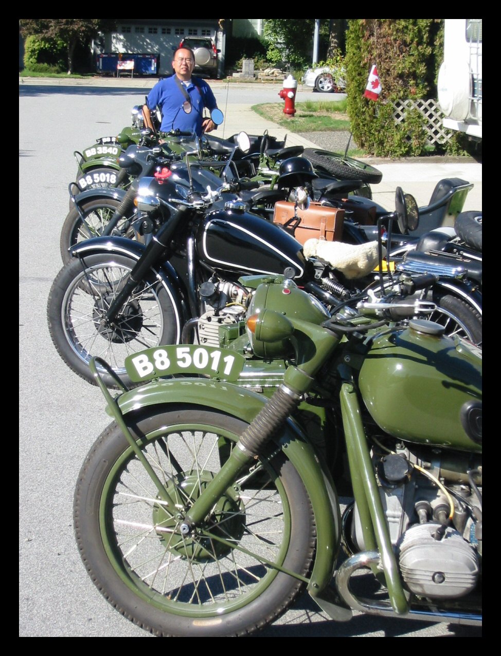 "My Panzer Gray bike and Ming`s dark green both have the tandem sidecar for our two kids. Erv's bike has the cute trailer and Bryan's is the regular army green CJ with sidecar. Anyone in the Vancouver area who'd like to join us for rides can reach me at leong8873@shaw.ca." | |||