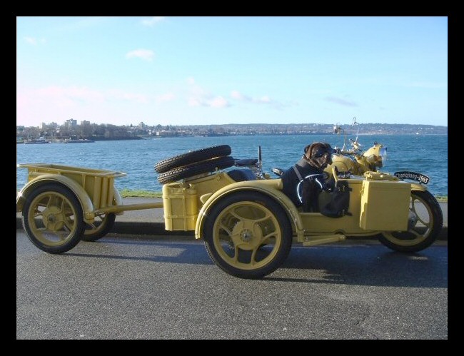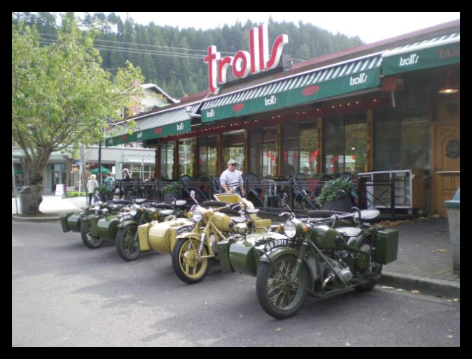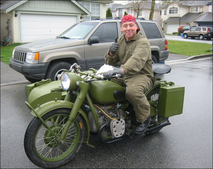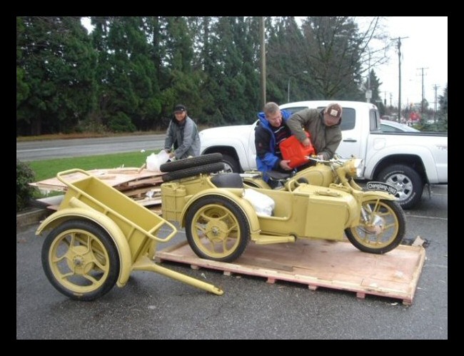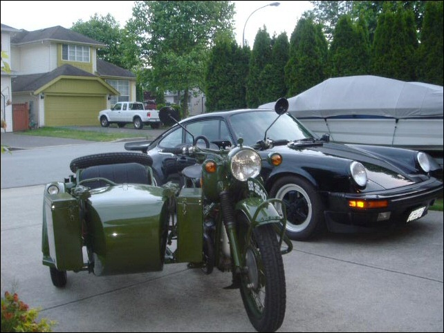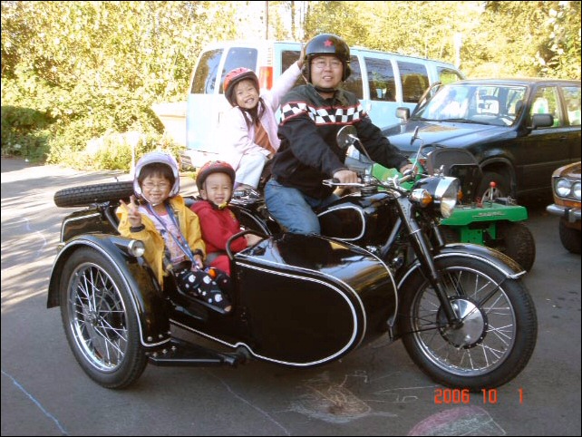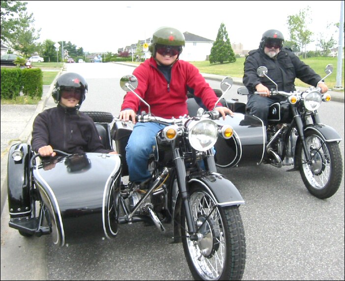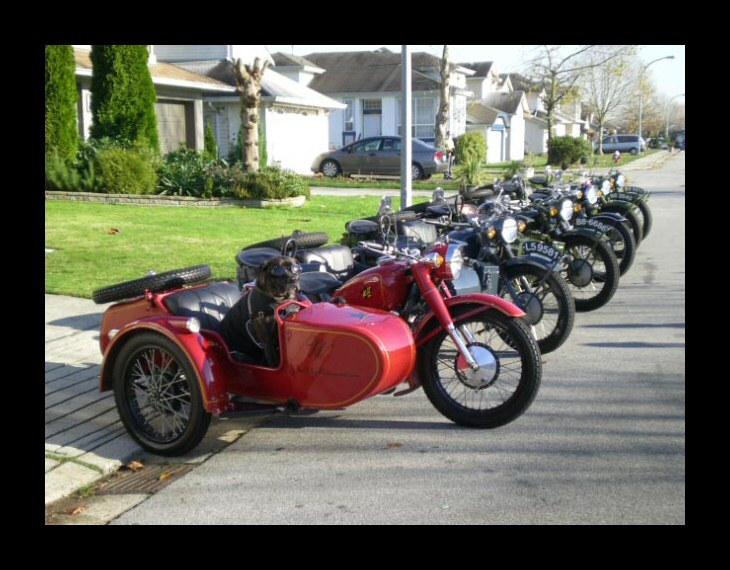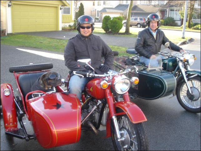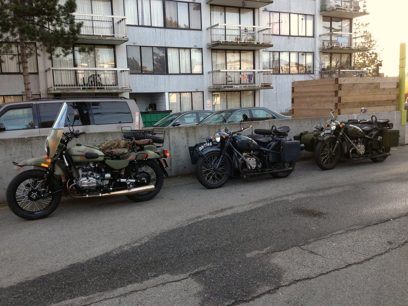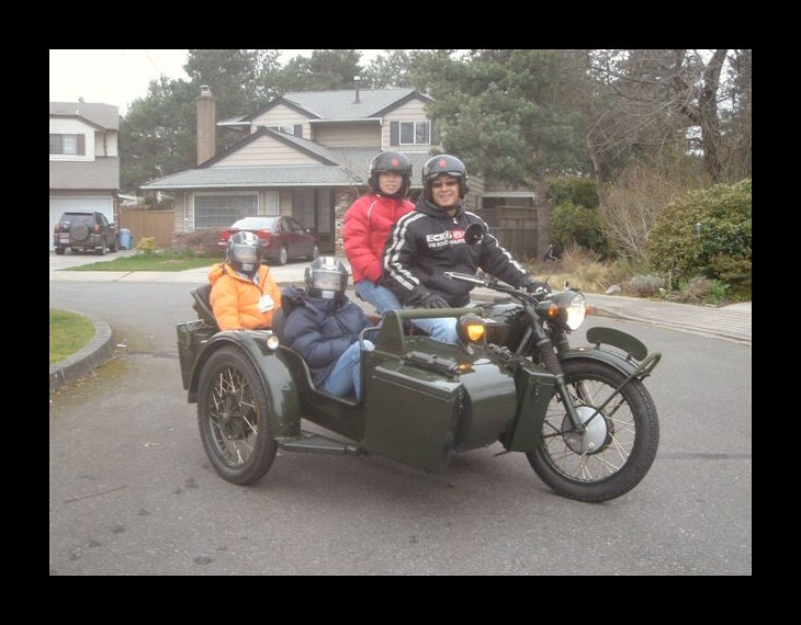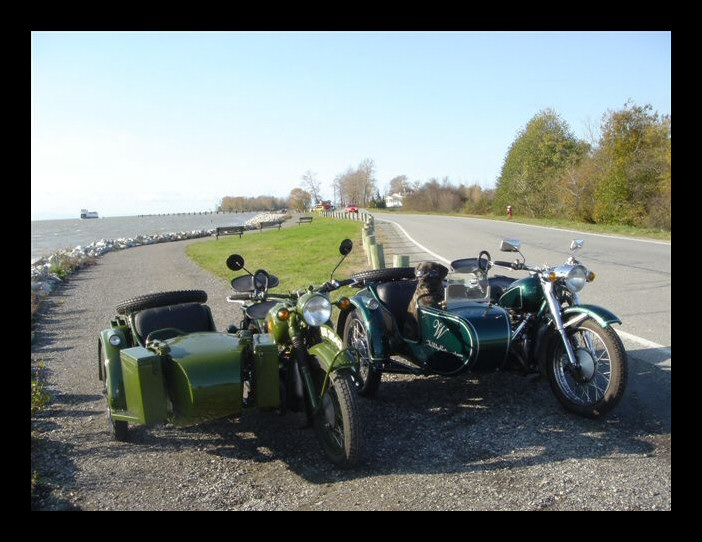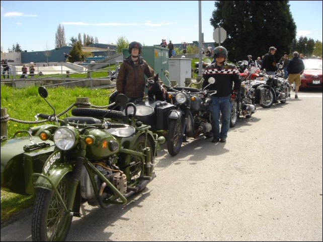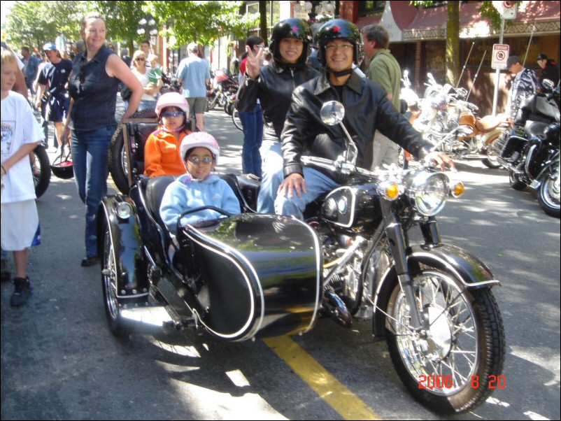 "My Panzer Gray bike and Ming`s dark green both have the tandem sidecar for our two kids. Erv's bike has the cute trailer and Bryan's is the regular army green CJ with sidecar. Anyone in the Vancouver area who'd like to join us for rides can reach me at leong8873@shaw.ca." | |||