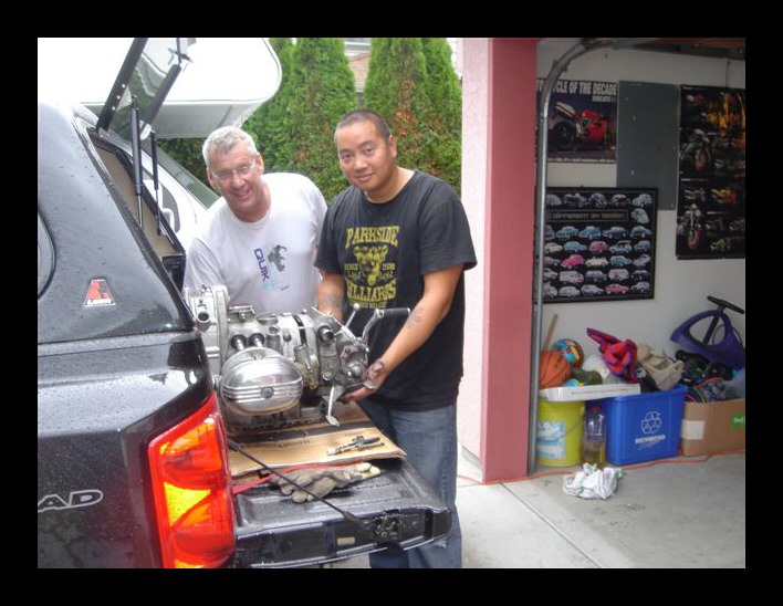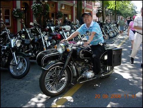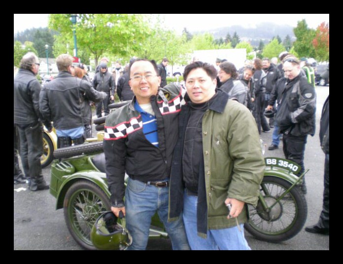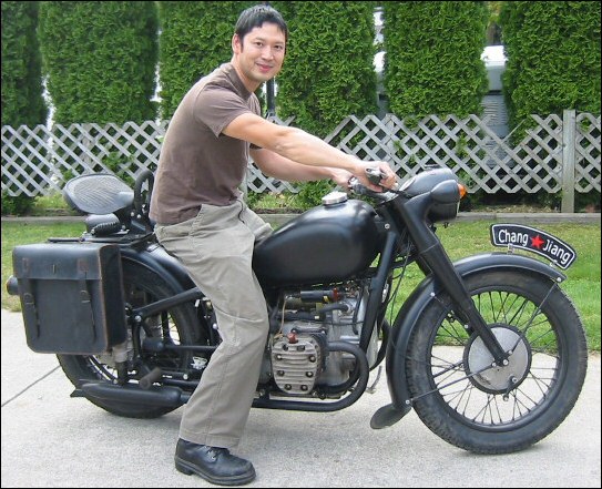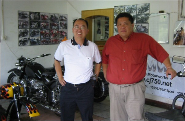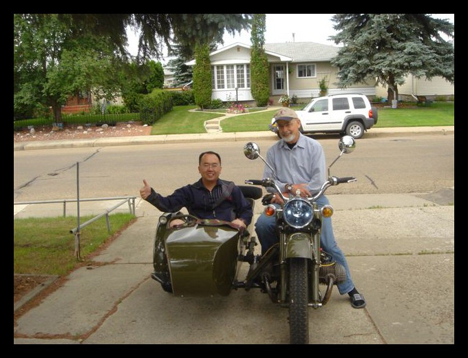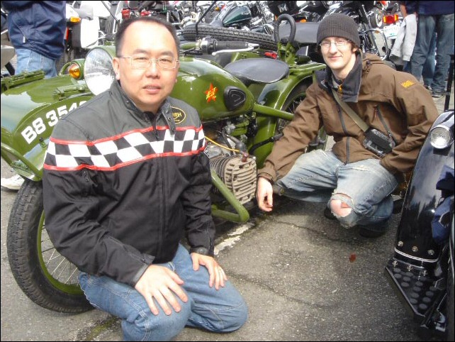"I'd like to introduce Richard Cheng and Don Peters. I first met Richard back in March when I took my Triumph in for federal inspection. Richard is the shop manager with Canada's largest automotive shop. He said us Chinese guys should be riding a CJ. I said "Do you have one?" No, but he and his friend Don had been thinking about it for two years." | ||||