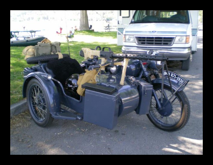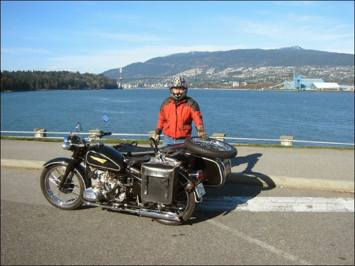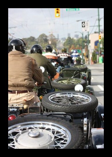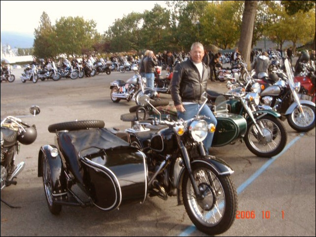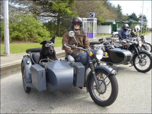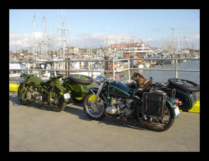 | "Here are some pictures from the Greater Vancouver 30th. Annual Christmas Toy run. It was a great turnout with thousands of motorcycles. With police escort and roads intersections blocked off, it took almost 20 minutes just to get all the bikes out of the parking lot for the 40 minute ride to the drop-off place at the PNE. What I can see was seven CJs and two Urals. Possiblly, there were more bikes with sidecars but there were just too many bikes around to see anything. BTW, the gun on the CJ was real. The tan bike with the dog got the most attention." | |||||