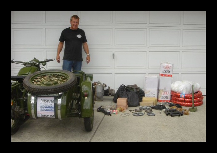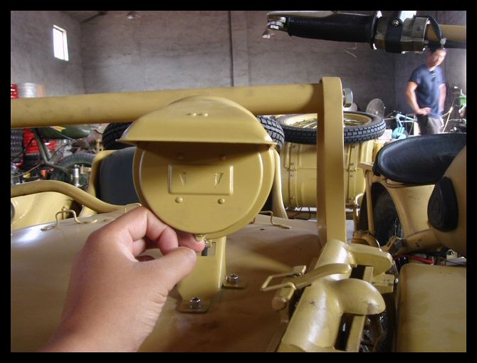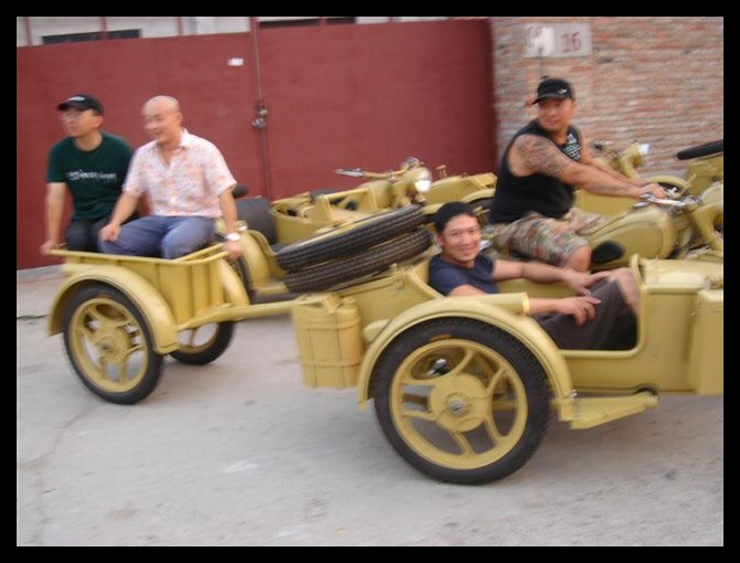 He went to CJS in Beijing and rode his CJ for two days and loaded up some of the vintage spare parts. I told him a Panzer Grey or Desert Tan would be nice and not to get the same green colour as mine. When he opened the box I just shook my head. *&%#, what a copycat!!!" | |||