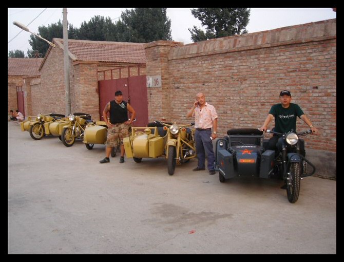 | "Back in mid-september we went to Tiebet and stopped by in Beijing to visit Shao. Two of my friends also went, Bryan for the second time and Erv for the first time. Erv got to test ride his desert tan CJ with a trailer before it was shipped to Vancouver. Check out the sidecar light and earls forks." | |||||