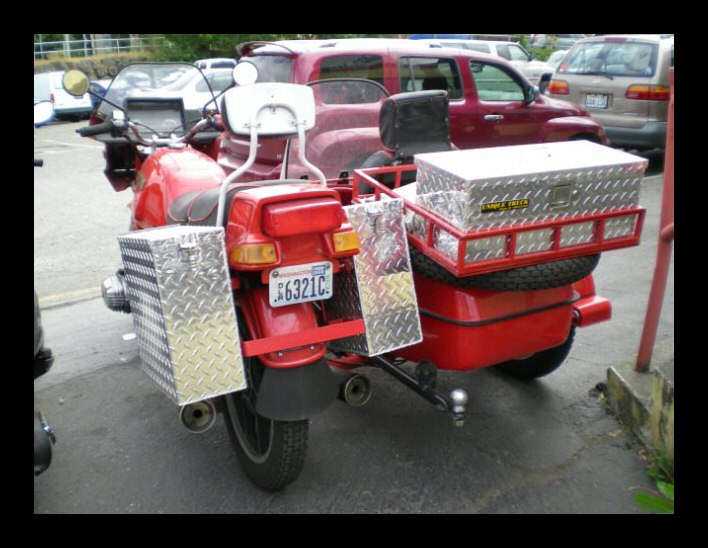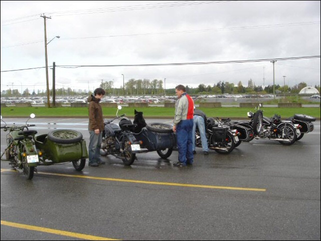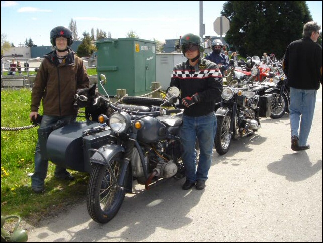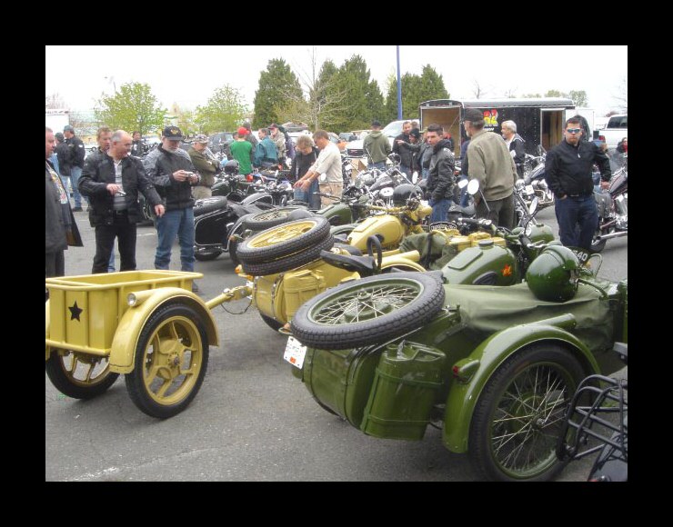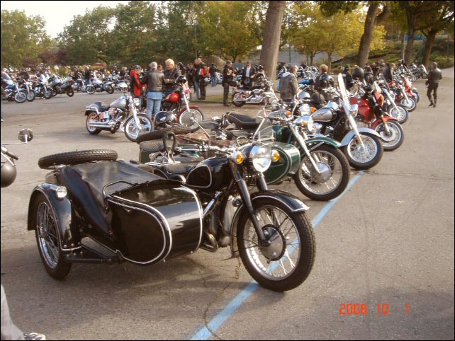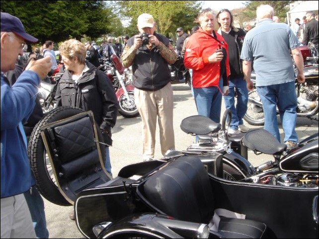 "One rider had a flat, but it turned out to be a very good ride. Click here for all the pics. This year there were lots of different makes of bikes with sidecars." | ||||