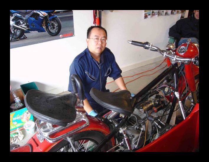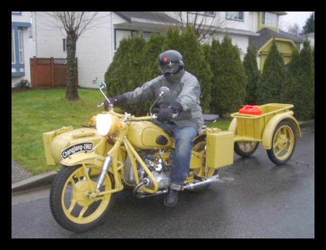 | "I said you are talking to a guy here who has two and knows many friends who have CJs locally here. The next night Richard with his friend Don were at my house drooling over my bikes. After seeing my bikes, the next day they ordered two CJ from Shao at CJ Sidecar. Three months later the bikes arrived. Glad to have meet both of them. Richard has over 25 years in the automotive industry. Don owns his own shop custom making bicycle frames, welding and fabricating. Don had made lots of upgrades to his bike. He made a hand shifter for his CJ (not attached to the tank) with a black knob for 1-4 speed and a red knob for reverse. I test drove it last night and it shifts like butter. He has also built a trailer hitch for CJ, straight pipe, ignition switch locator, crossover pipe and much more. We are now testing out his creations on our bikes. Hopefully, in a few months I can convince him to have a link on CJU to offer some of his aftermarket creations. Here are some pictures of Don's stuff. We often have GTG nights. Anyone in the Greater Vancouver area in terested in GTG nights, to share ideas or rides, to chat about air cooled Porsches, British bikes and Chang Jiangs is welcome contact me at leong8873@shaw.ca" | |||||