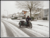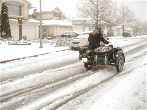 | Below: "Here is our first blast of winter on a CJ. Henk sold his car six months ago and has been riding his CJ even in the rain and snow. He was riding it to work and stopped by my house for some photos." | |||||