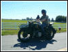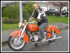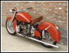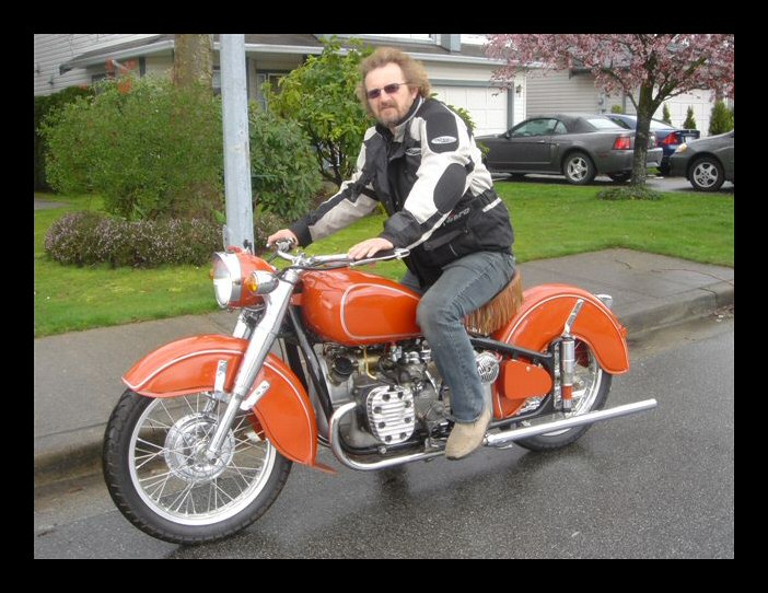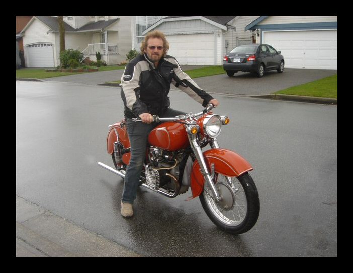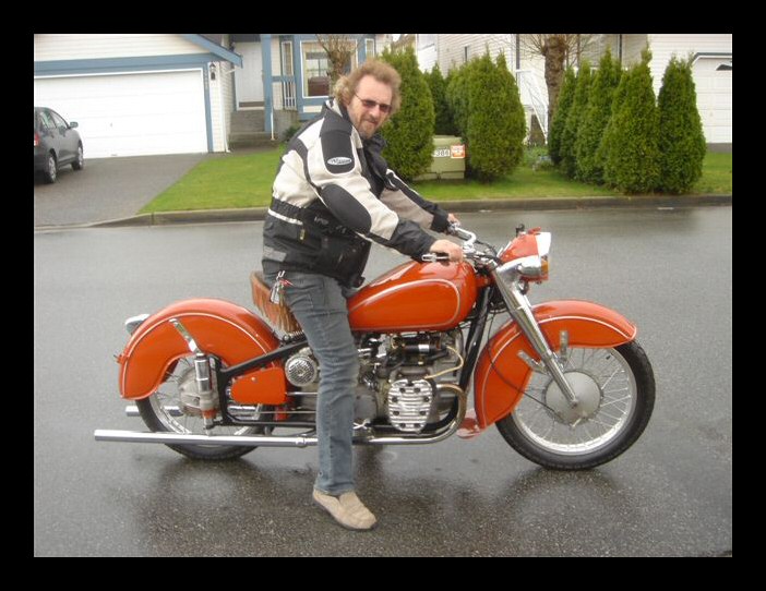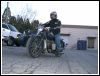 | "It was 9 AM and there was a knock on my door. I opend the door to a surprise visit from John & Carol from Okanagan Ride and Rest. They had just picked up an unusual looking solo Indian type CJ built by CJS. I guess they had to stop by my place on their way home to show it off! Very inetresting bike with Indian style fender and seat, stretched long frame, nice alloy wheels, bigger fuel tank, wide handlebar and great sounding straight pipes." | |||||