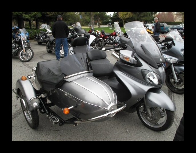 | Miin's new SV sidecar from CJS has a military theme. It has a toolbox tank, crash bars, a black exhaust system and much more! | |||||