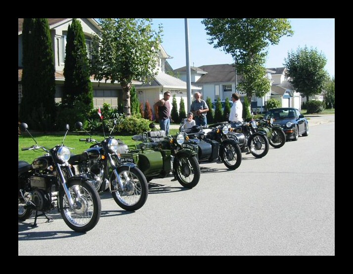 From Bill Taylor: "Last week while visiting friends and family in Vancouver BC, I had the opportunity to meet some of the local CJ community. Veteran CJ rider Miin Leong invited me for a ride, and when I arrived at his place there were four Changs and two Enfields lined up." | |||