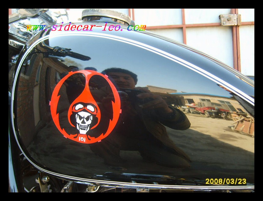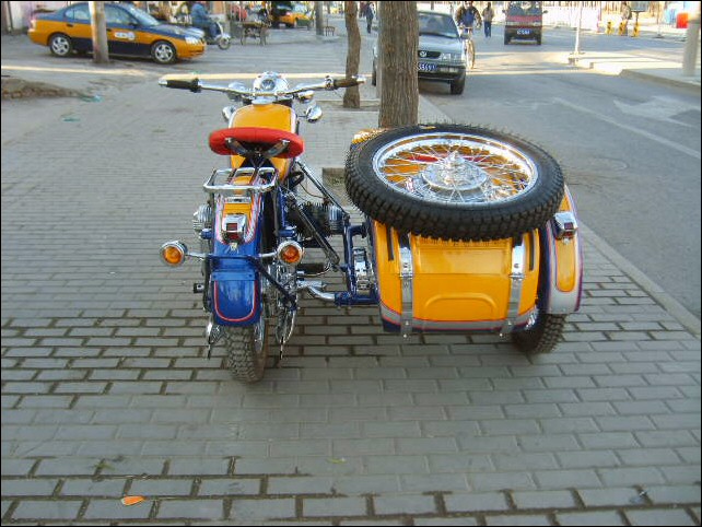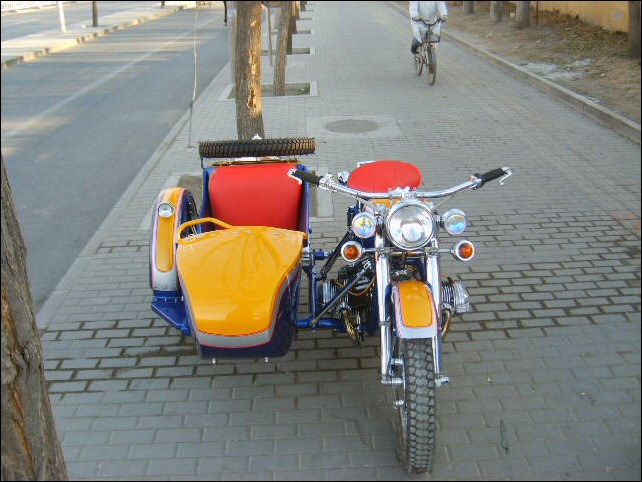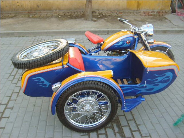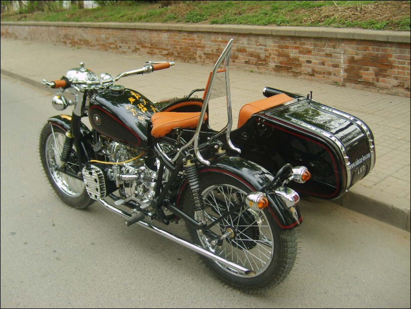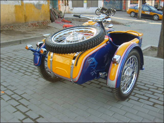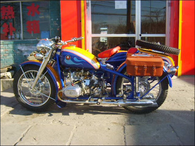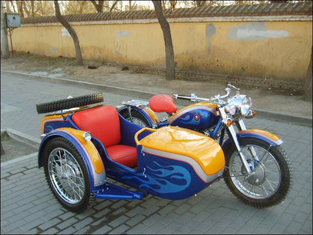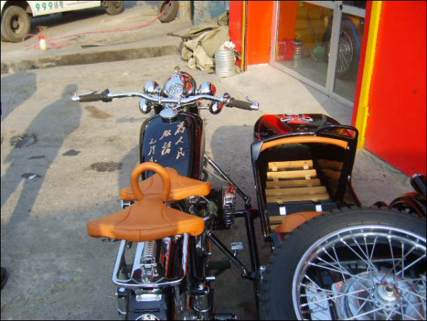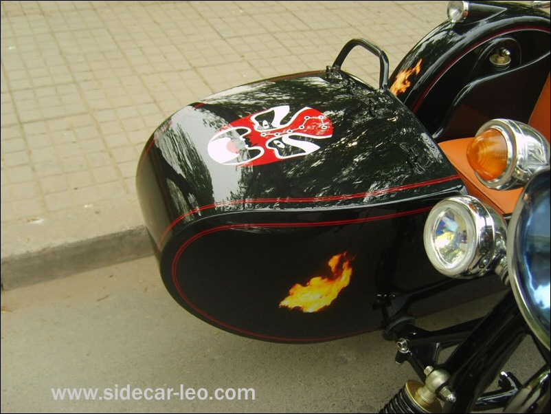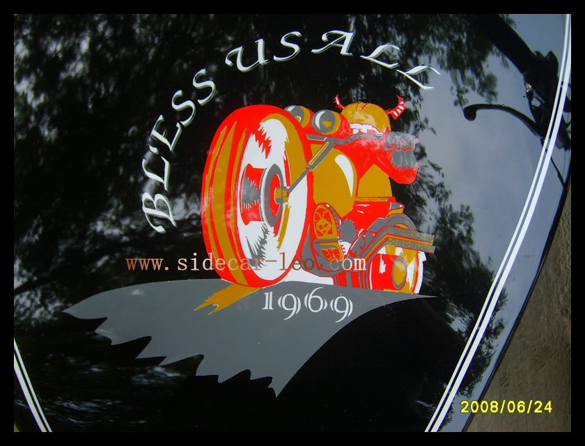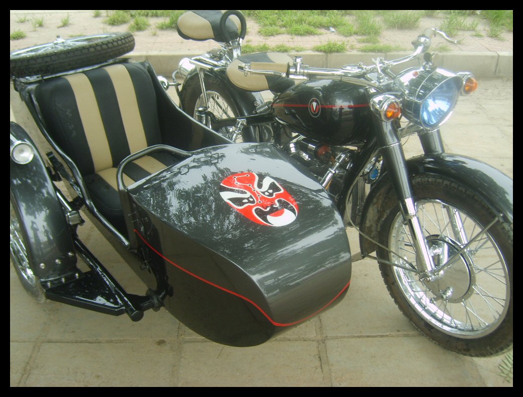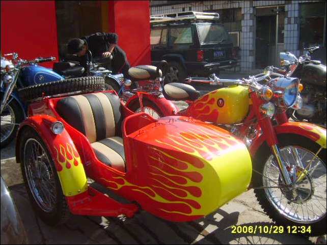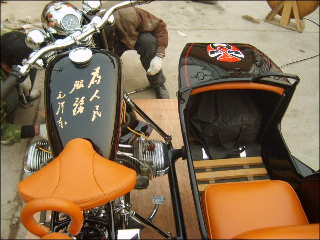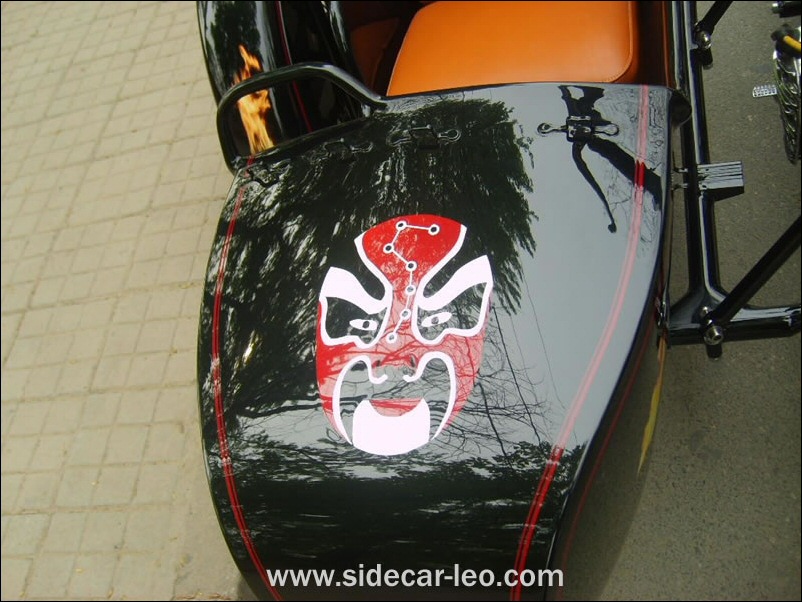 "The paint work of my last restored sidecarChinese Feeling, Series II, Chinese intense emotion. The air brush work is by a very nice Chinese technician who charges very cheaper fee. If who like to make a air brush work on his bike can contact me. It will be high quality and cheaper." | |||