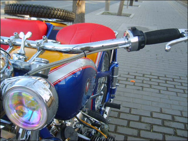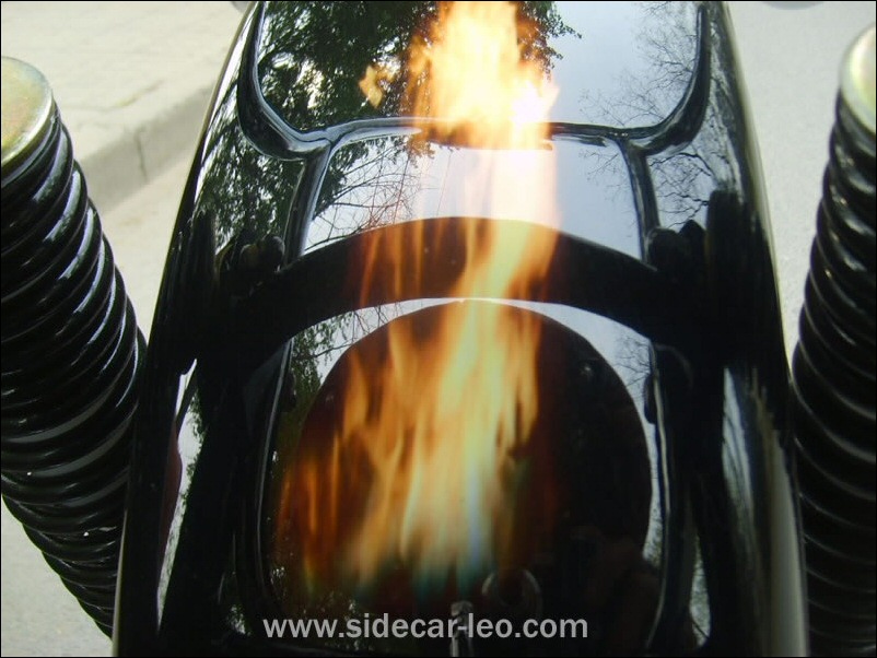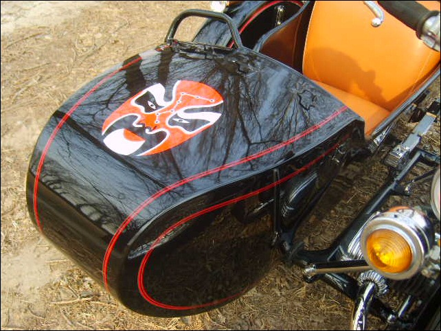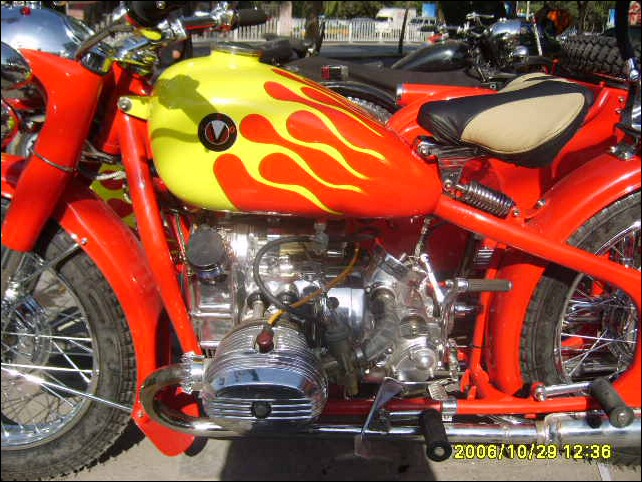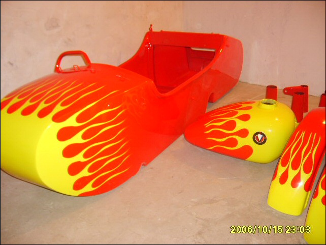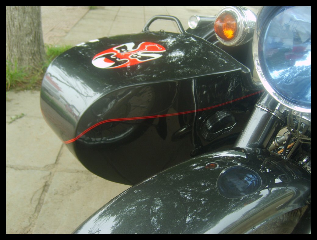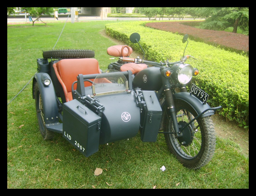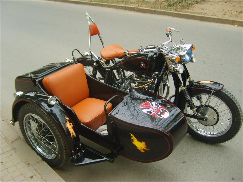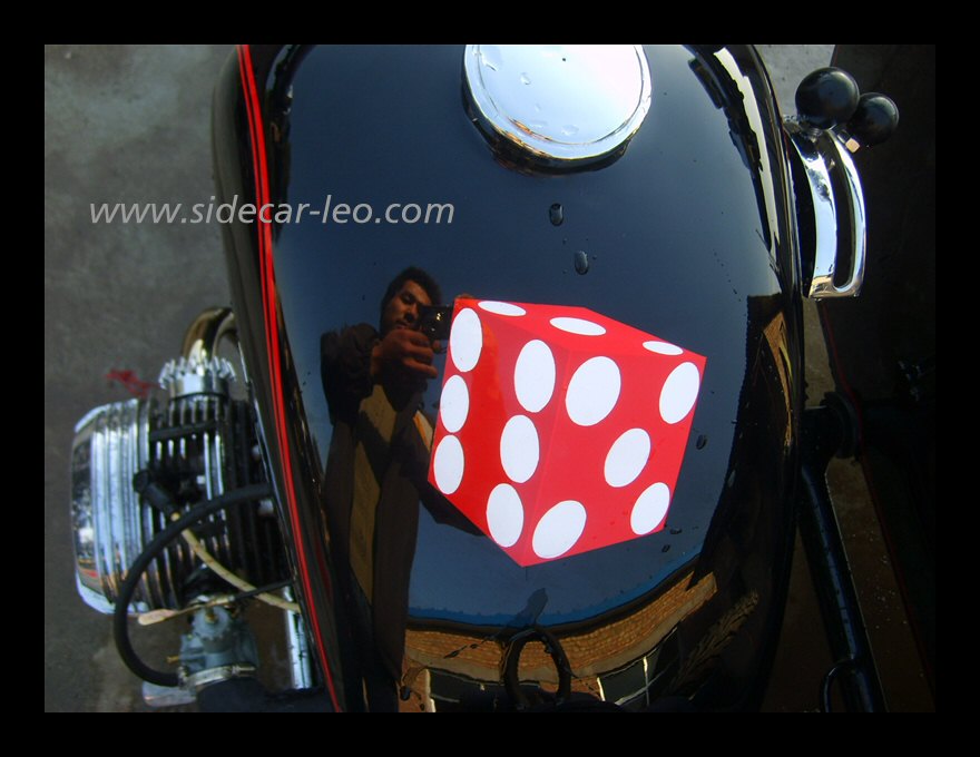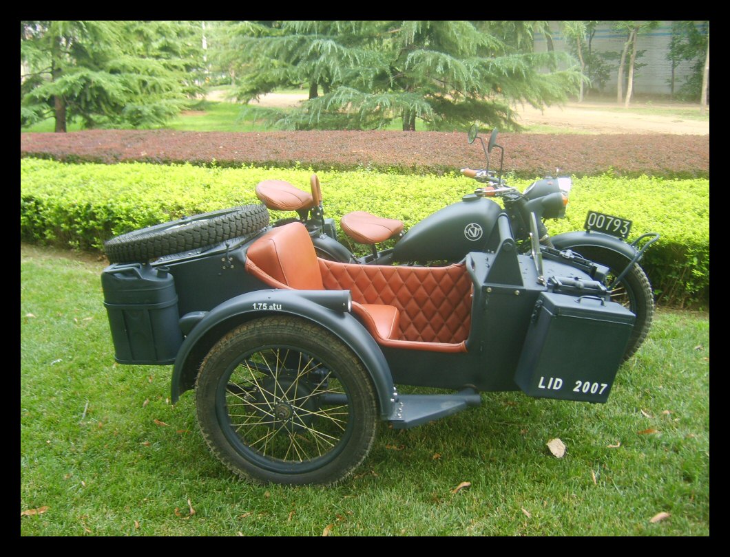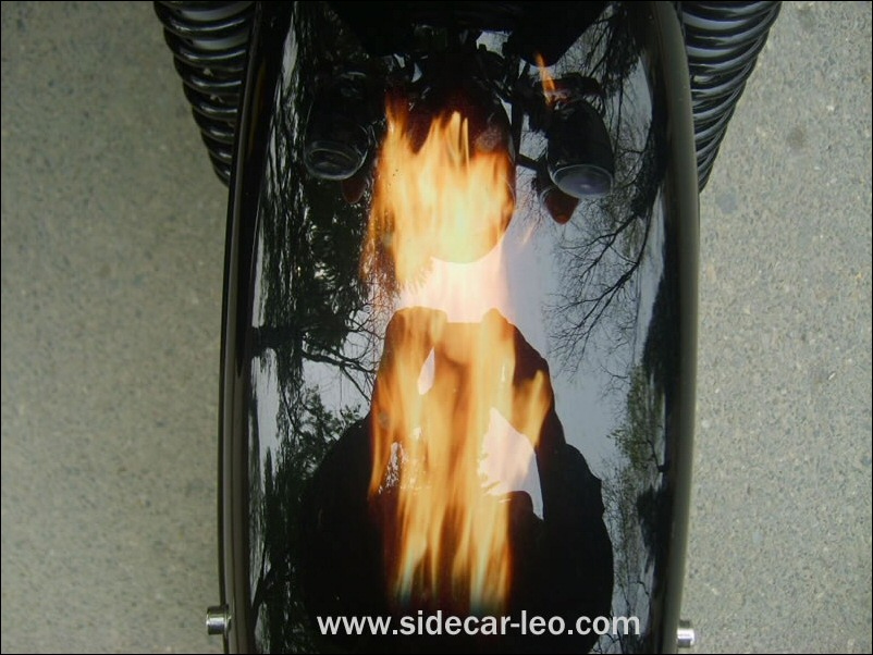 "The paint work of my last restored sidecarChinese Feeling, Series II, Chinese intense emotion. The air brush work is by a very nice Chinese technician who charges very cheaper fee. If who like to make a air brush work on his bike can contact me. It will be high quality and cheaper." | |||
