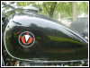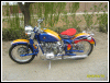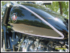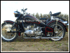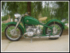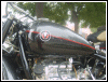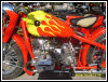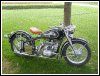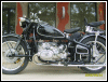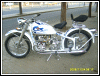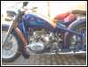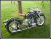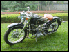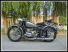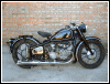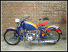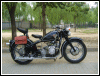 A customized OHV solo with a lot of interesting features, most notably the swing-arm frame, the forks, the fenders and the tank shifter. The paint job really stands out on this machine. | ||||