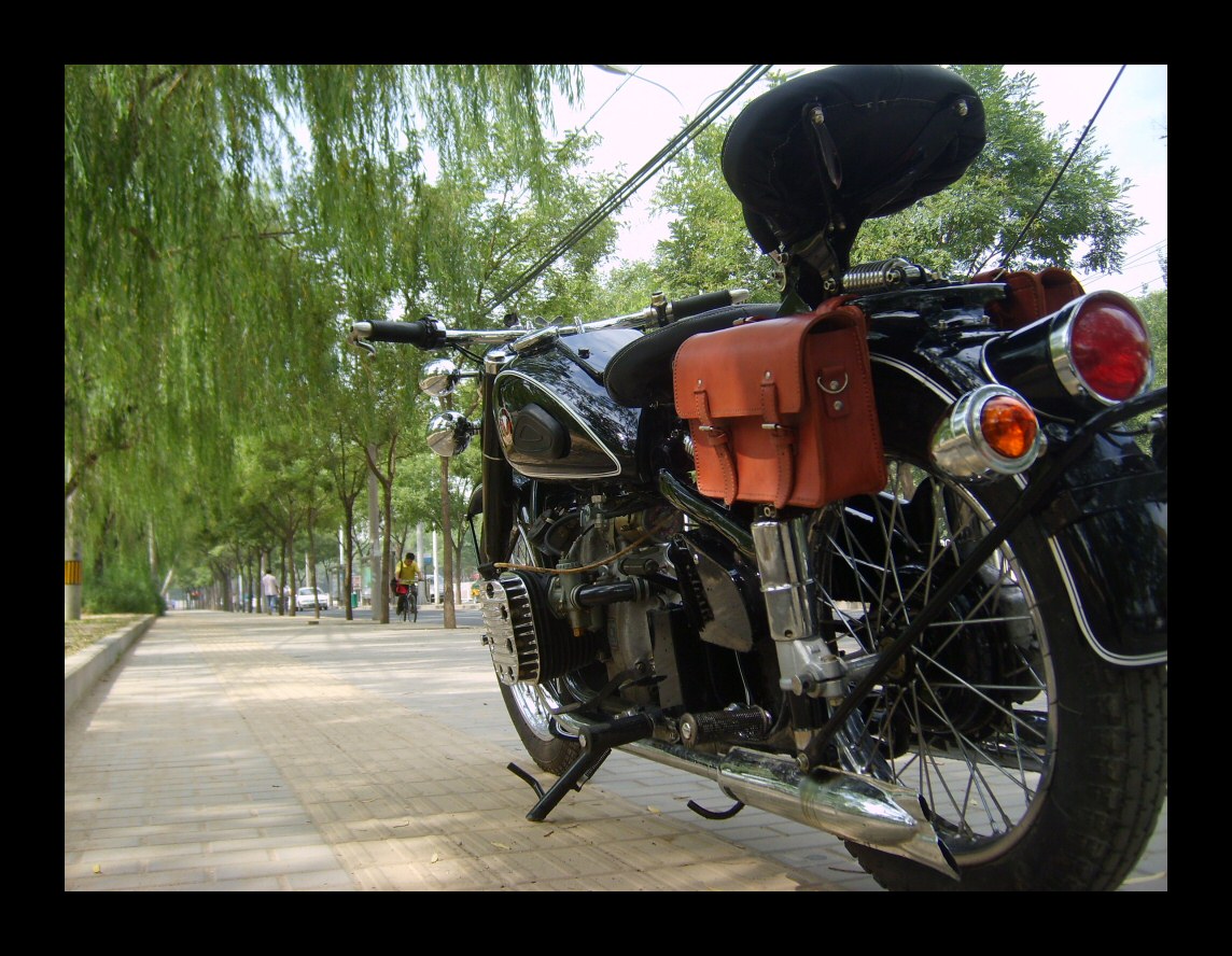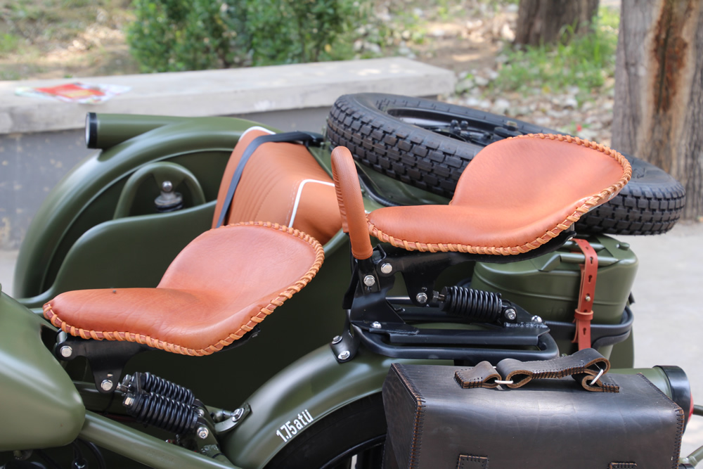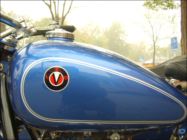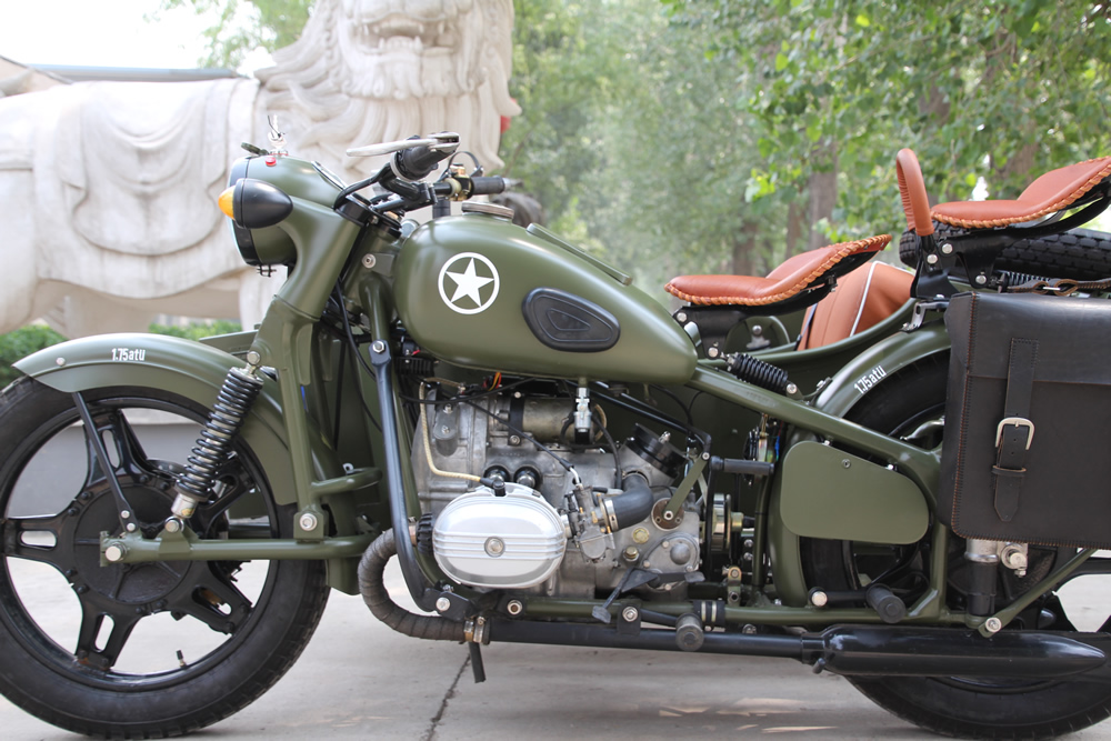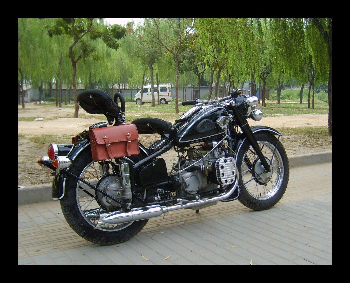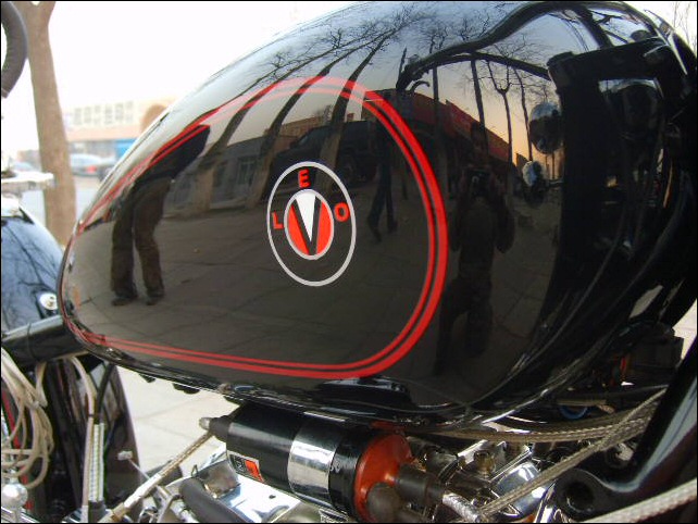 Leo's customer Thomas will ride this nicely decked out WWII-themed OHV all over his hometown of... Beijing. | |||