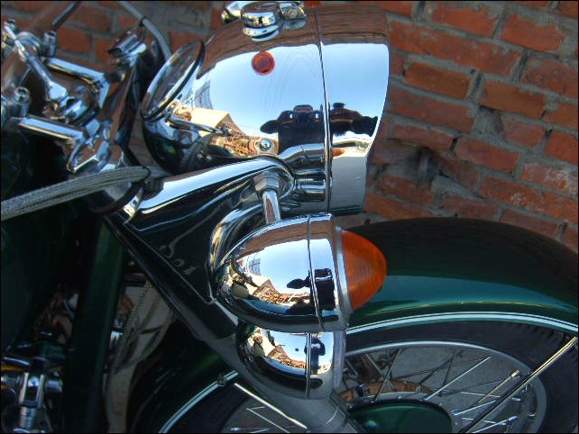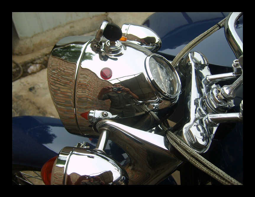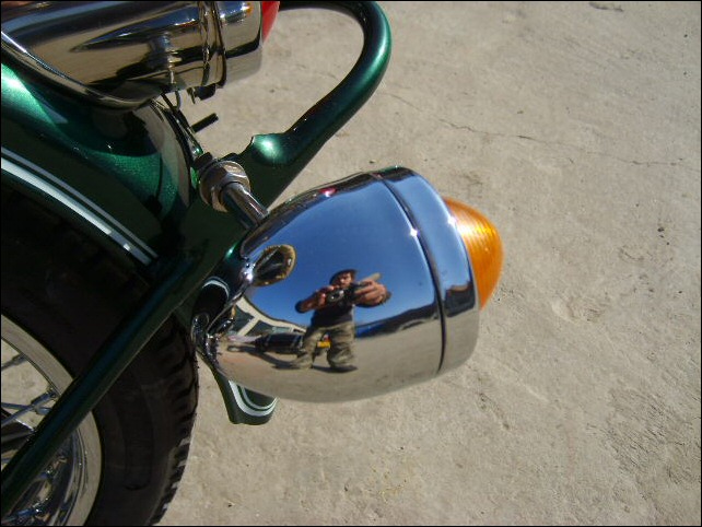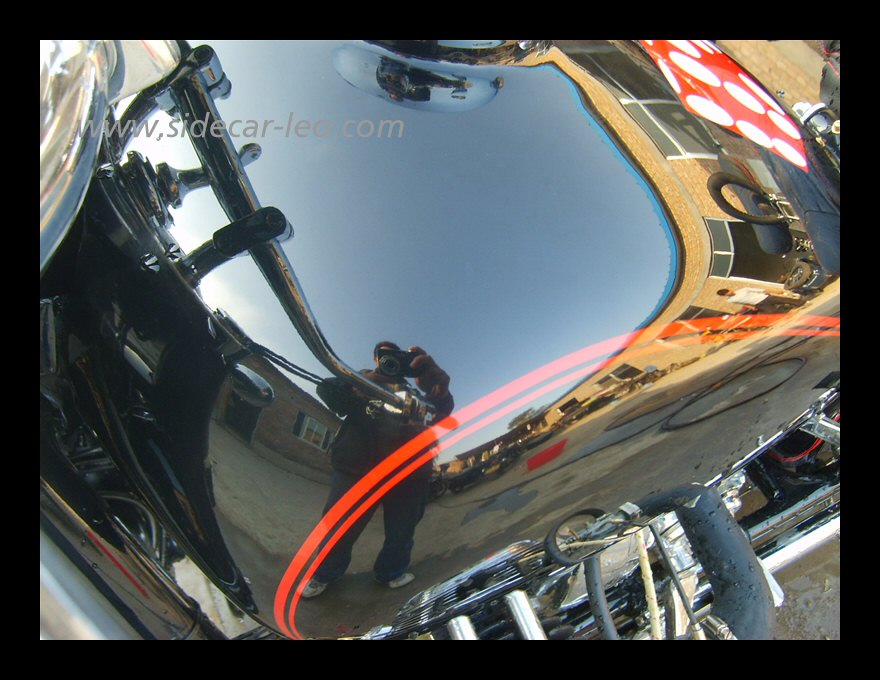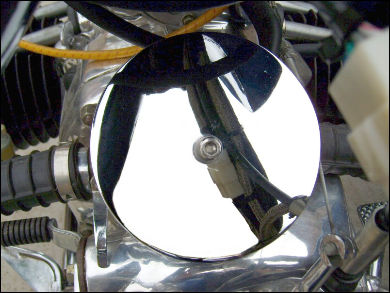 If you're into flashy bikes you'll appreciate this mini-air filter that Leo uses on some of the bikes he builds. It has a mirror finish as you can plainly see. | |||