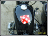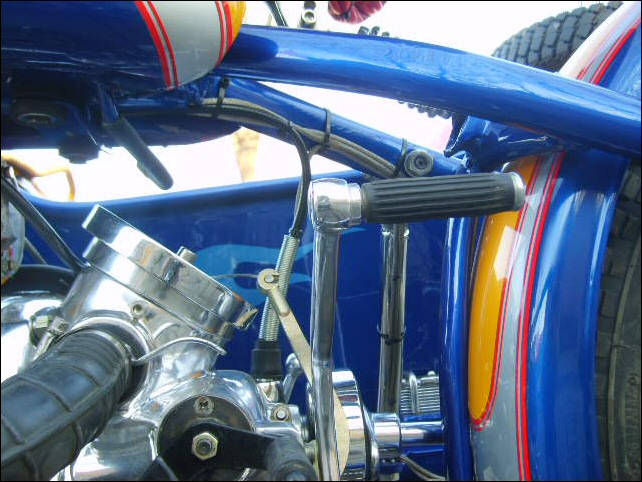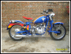 This OHV is painted in the traditional vintage styleblack frame, black rims and an excellent shade of blue. Looks like 4" rubber as well. Jean, the customer, is going to be delighted when he receives this machine. | ||||