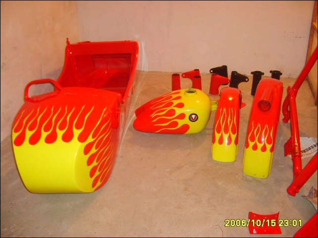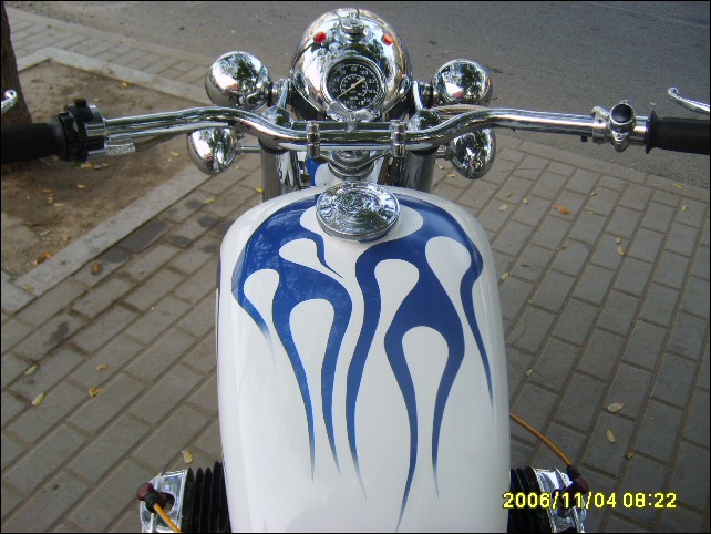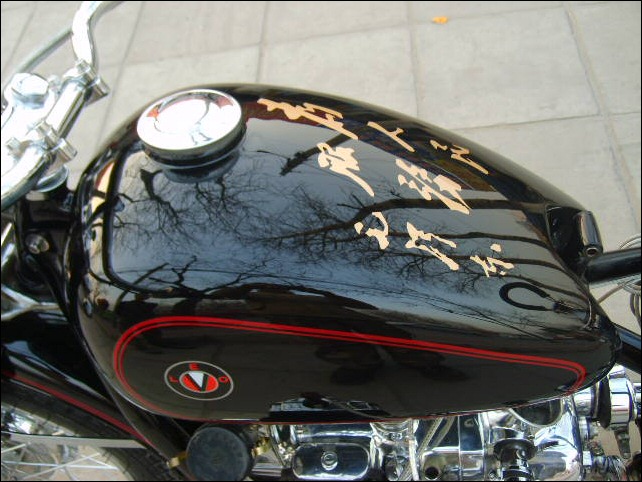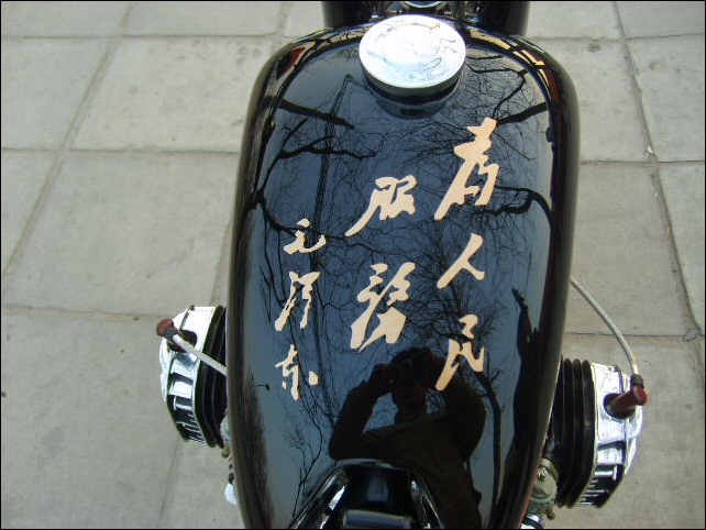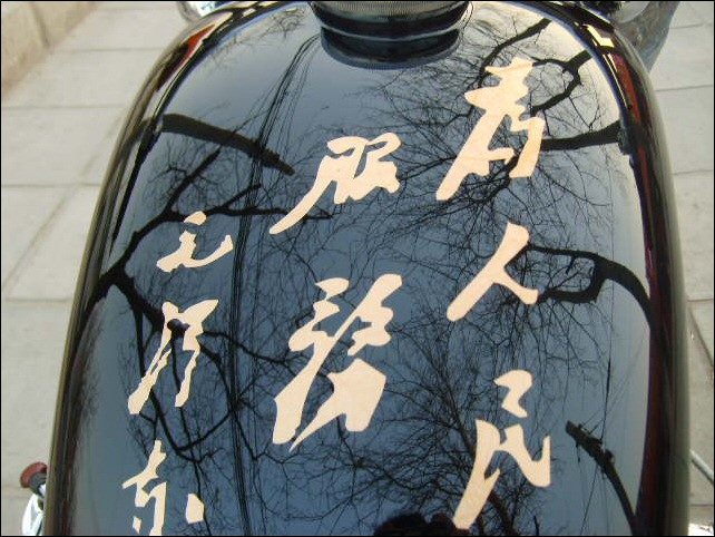 "Therefore today I must bring a rousing news to you and all CJ amateurs: Our paint craft has a huge progress, now if you order bike from me, you can ask me paint any pictures on your bike, you just need take photos use your camera, then I will paint it to your onto your bike. Touch the pictures we painted on the motorcycle, you could not feel their existence, because all color thickness all is xtremely consistent. Enclosed my new work." | ||||