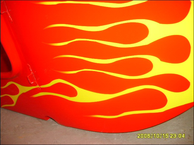 | Look at this vivid flame job. Visibilty won't be an issue for this bike. | |||||