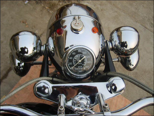 A solo M1M with plenty of chrome and polished aluminum. Note the custom upholstered saddles, too. | |||