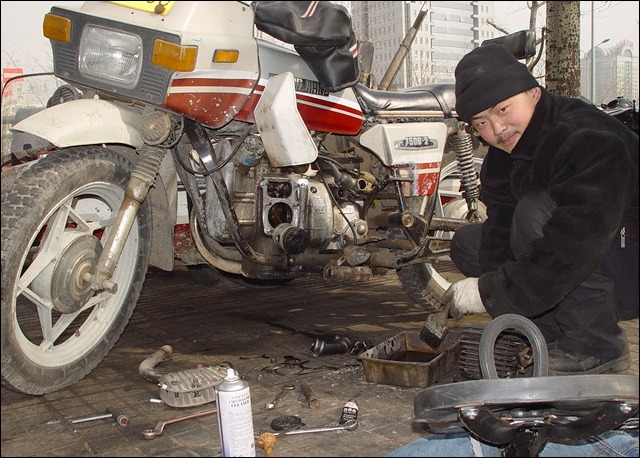 And here's a mechanic working in the service department of a local Beijing 750 shop. | |||||