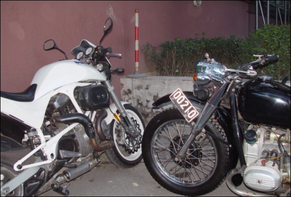 The Buell in this shot belongs to Tim, one of four bikes he has with him in PRC (two Changs, an R80 RT and the Buell.) Lucky. | |||||