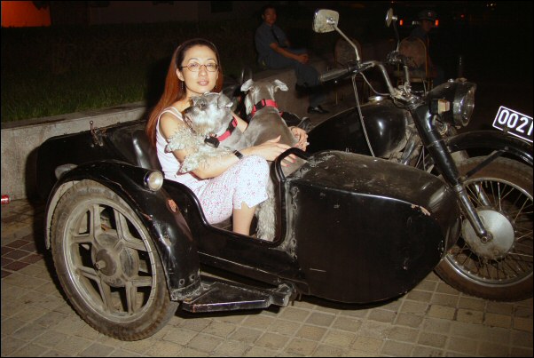 And this is Kathy with the family schnauzers. Do you think these dogs like to ride in the sidecar? | |||||