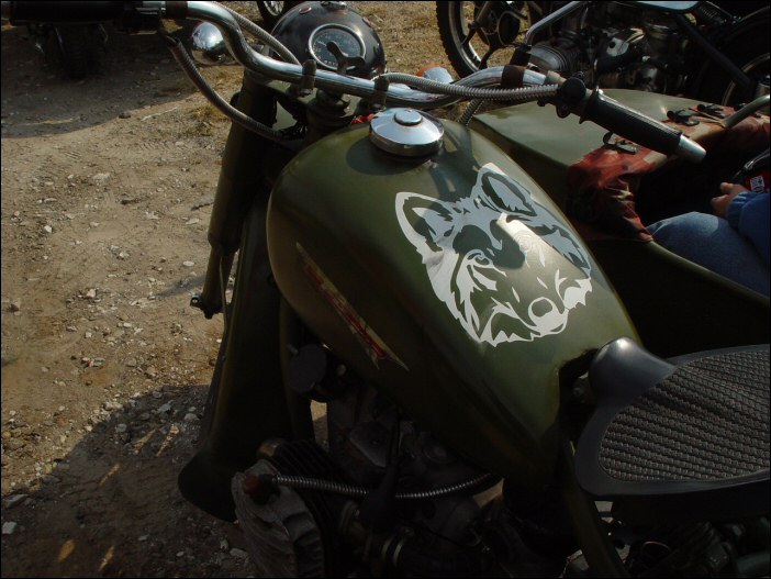 Another pal's bike. This one is an M1S with a US Army tag on the sidecar. Look at the CJ swoosh emblem on the bucket. | |||||