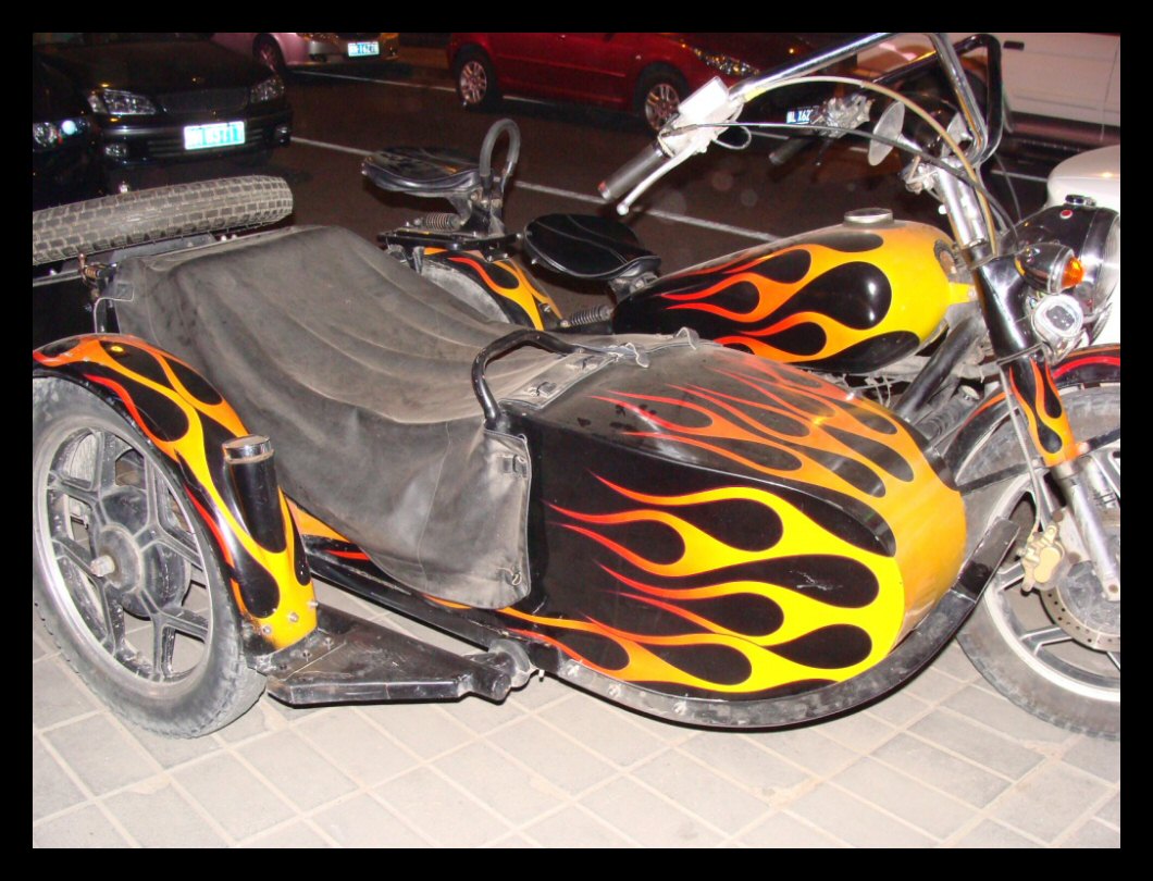Same bike from the other side. Chinese-owned CJs tend to be colorful... to say the least. | |||||