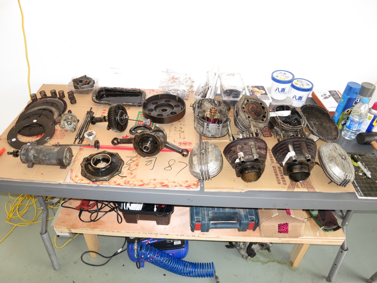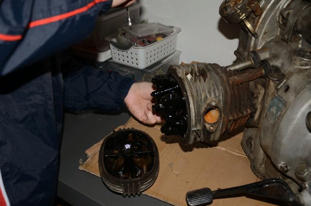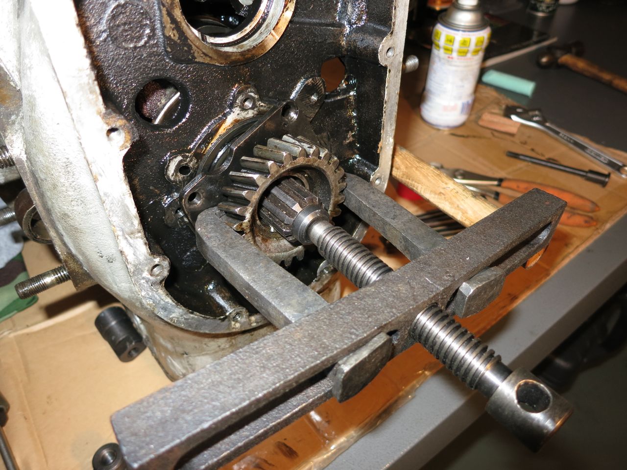 "Now the clutch, flywheel, oil pan, and crankshaft