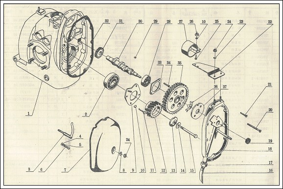 engine. The distributor is inside the front cover. It has