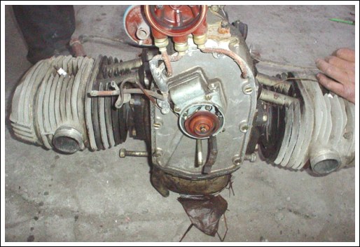 A 1966 type I engine and gearbox. |
