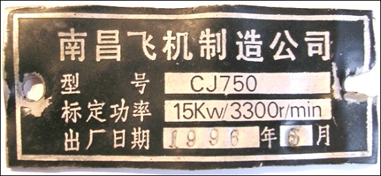 Engine number tag from a CJ750D. t's from