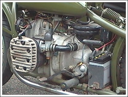 Georg is also a fan and owner of Rusian iron as well. In fact he sent quite a few Dnepr pictures that I haven't posted due to space limitations. Here's one of them for comparison purposes. It's a Dnepr flathead motor which is 750cc. | ||||