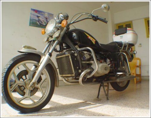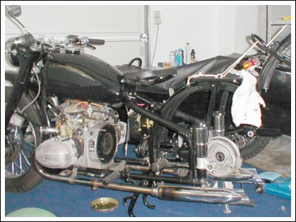 "The bike was great, but New England weather started taking a toll quickly. I decided two years ago to tear down the bike, powder coat the frame and stuff in a BMW engine, a la Jimbo." | ||||