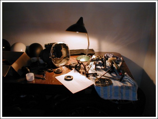 ...after a gear ring crash. Look familiar? It probably does to most of us, and it probably wasn't a fun day, but at least Georg has a nice environment for working on his bike. | ||||