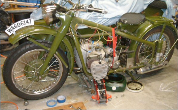Georg went to quite a bit of trouble and expense to bring the bike up to modern standards... only to have the title office decide it's a 1957 model (with an OHV!) | ||||