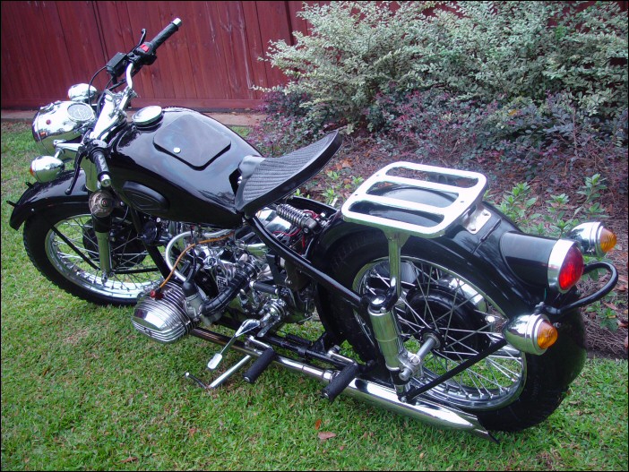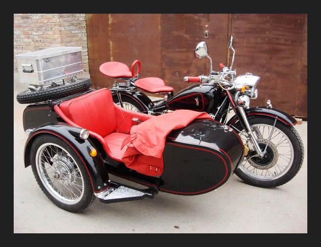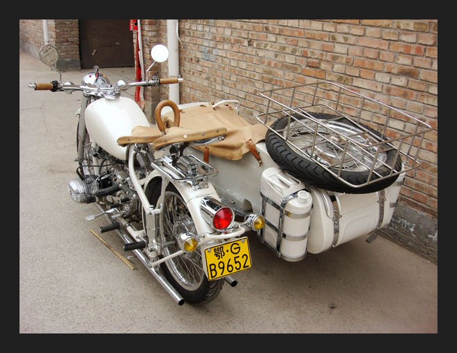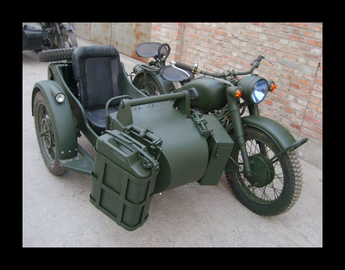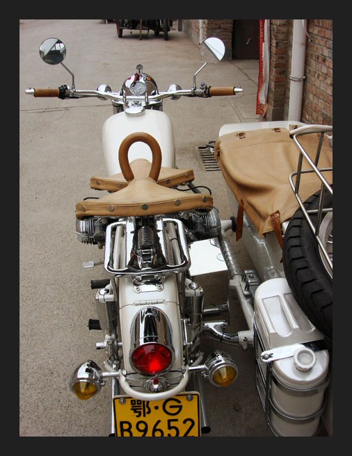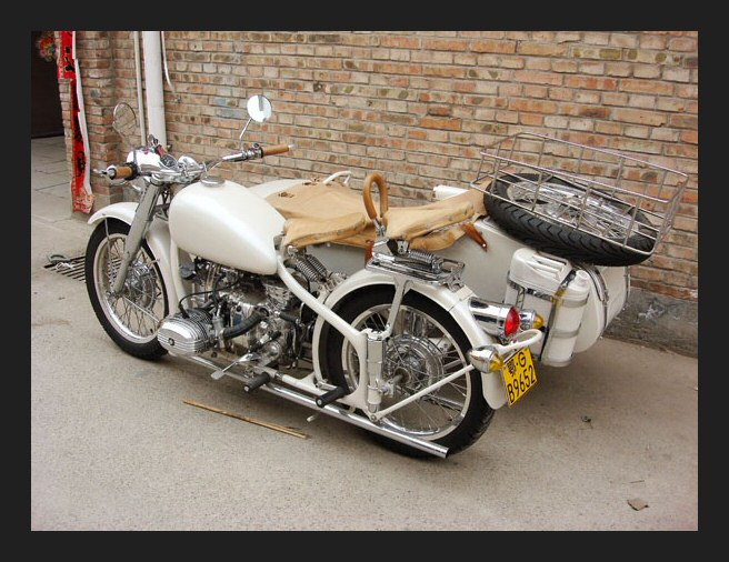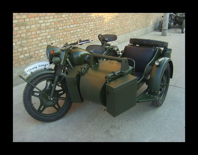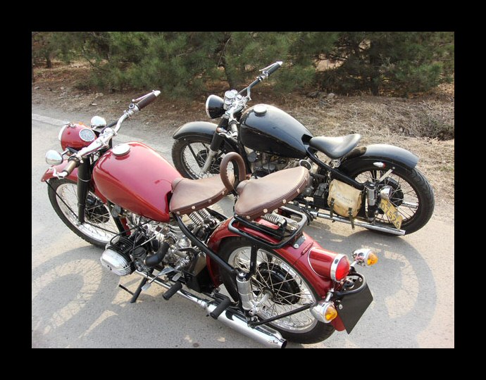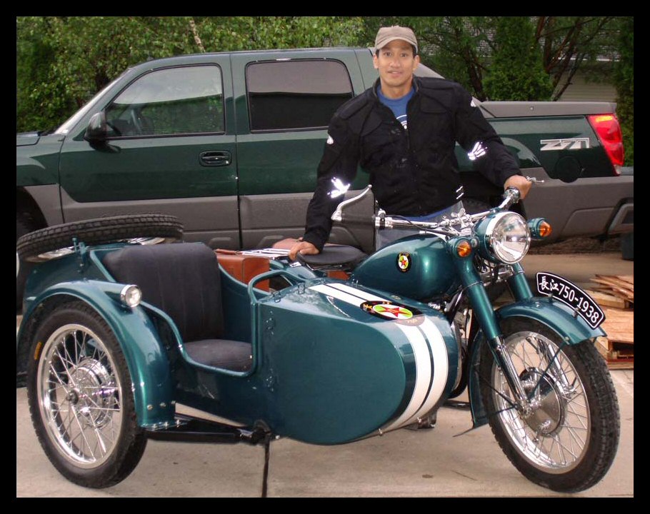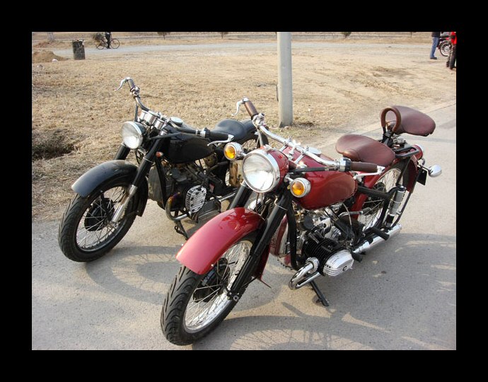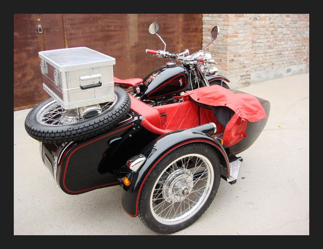 Well, whattayathink? Georg Kainer's project is complete and although it's only about 45% Chinese (and the rest Russian) it's a fine looking machine. The fenders, sidecar and gearbox are all CJ. The engine is a Russian sidevalve mounted in an M72 frame. | ||||
