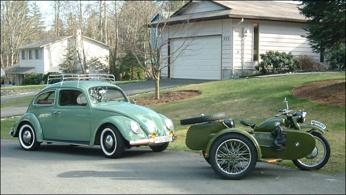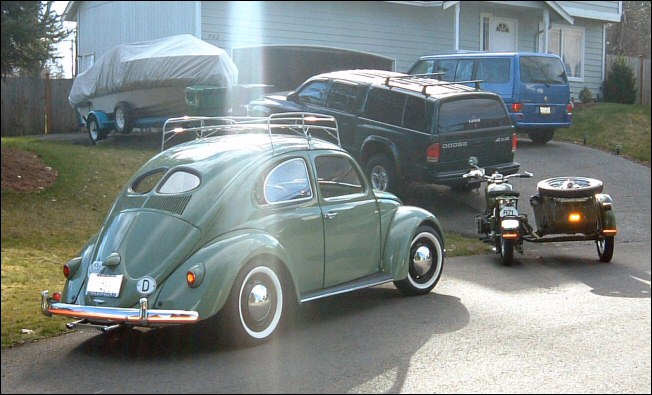 Like many of us, he's also a car guy. Enlarge the image and you'll see the split rear window in that Bug. These cars have become quite rare in the US. | ||||